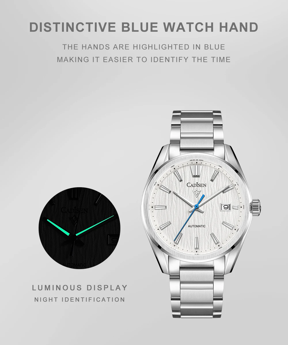 CADISEN NEW Luxury Men Mechanical Wristwatches 10Bar Waterproof Japanese NH35 Movement Automatic Watch Steel Watch for Men
