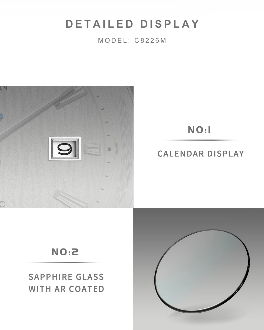• AR COATED SAPPHIRE CRYSTAL(SCRATCH-RESISTANT) : Guarantees scratch-resistance and clarity, offering a superior viewing experience.