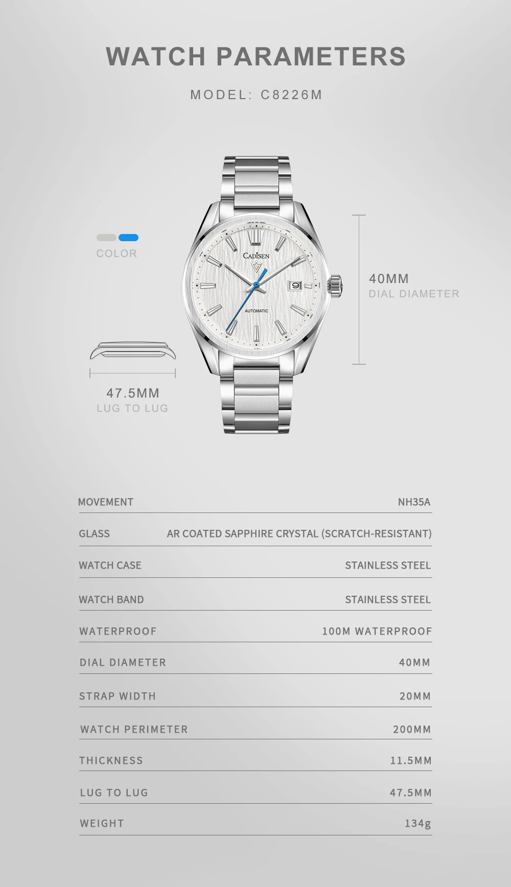 • Automatic Self-Wind Movement :Experience the Japan Seiko NH35 luxury of a self-winding mechanical wristwatch, ensuring accurate timekeeping without the need for frequent manual adjustments.