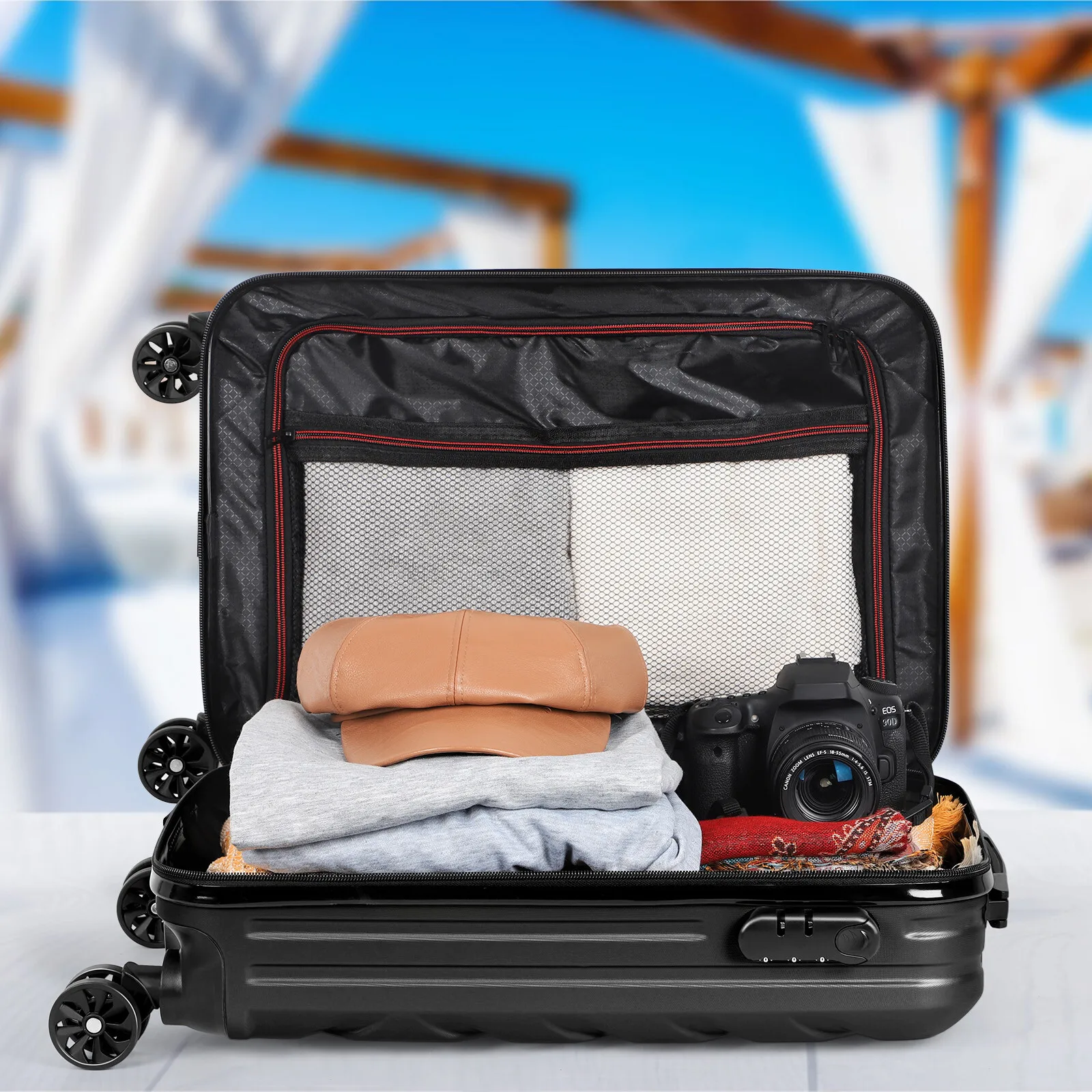 LUXURY SUITCASES WITH WHEELS: The trolley spinner is a flawless combination of form and function Made with PC+ABS hardshell material, our luggage is not only lightweight, but also highly durable, ensuring it will endure countless adventures. Its surface texture prevents scratches Our roller is stylish, water-resistant.Approved carry on hardside luggage size, fully compliant with TSA.