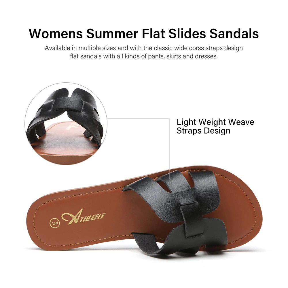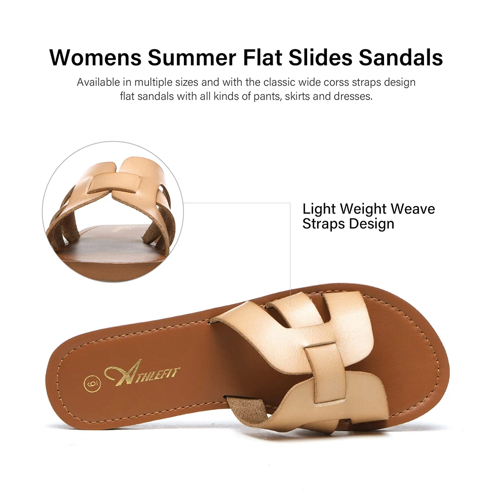 Casual Womens Flat Slippers Sandals Fashion Summer Slip On Leather Slide Shoes Concise 2024 New