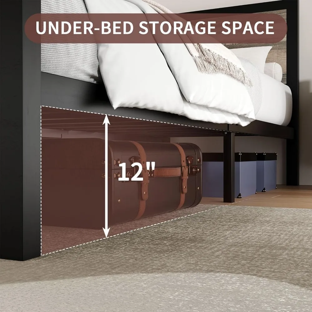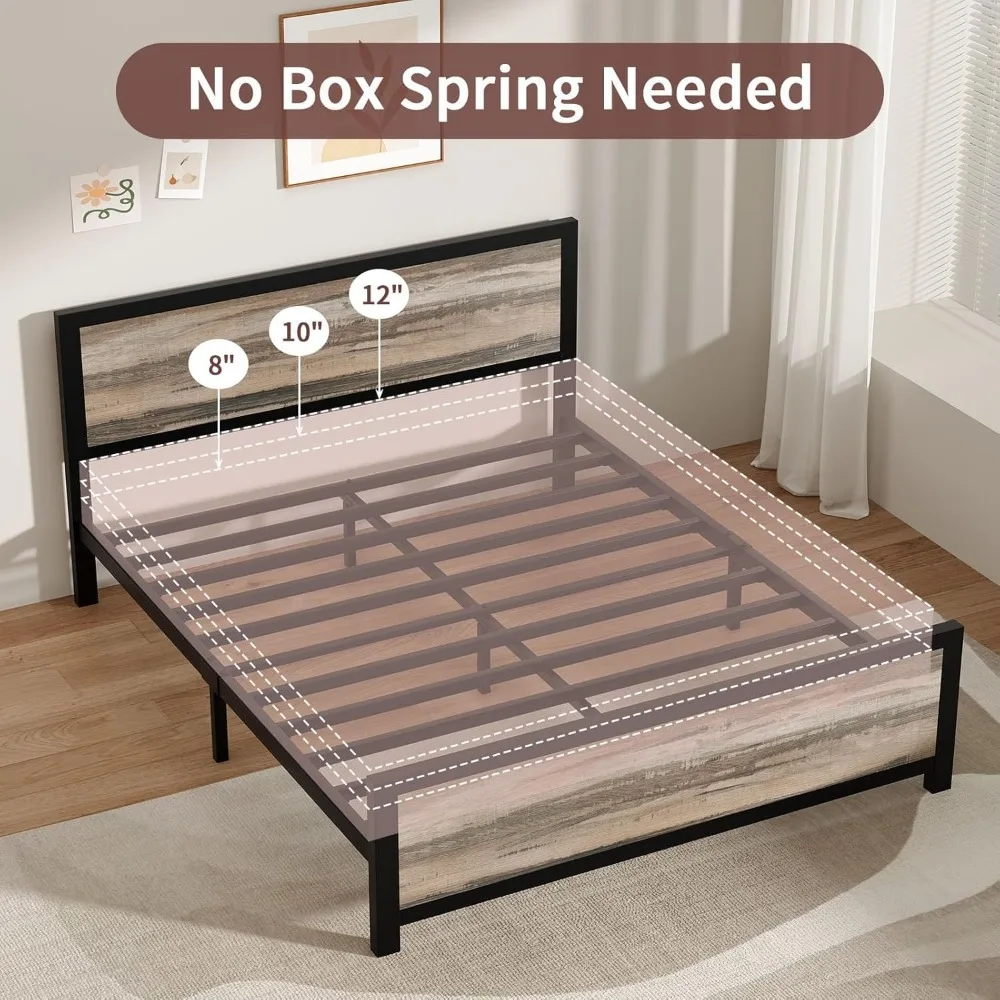Catrimown Queen Bed Frame with Headboard, Metal Bed Frame Queen Size, Heavy Duty Metal Platform Bed Frame, Under Bed Storage, No