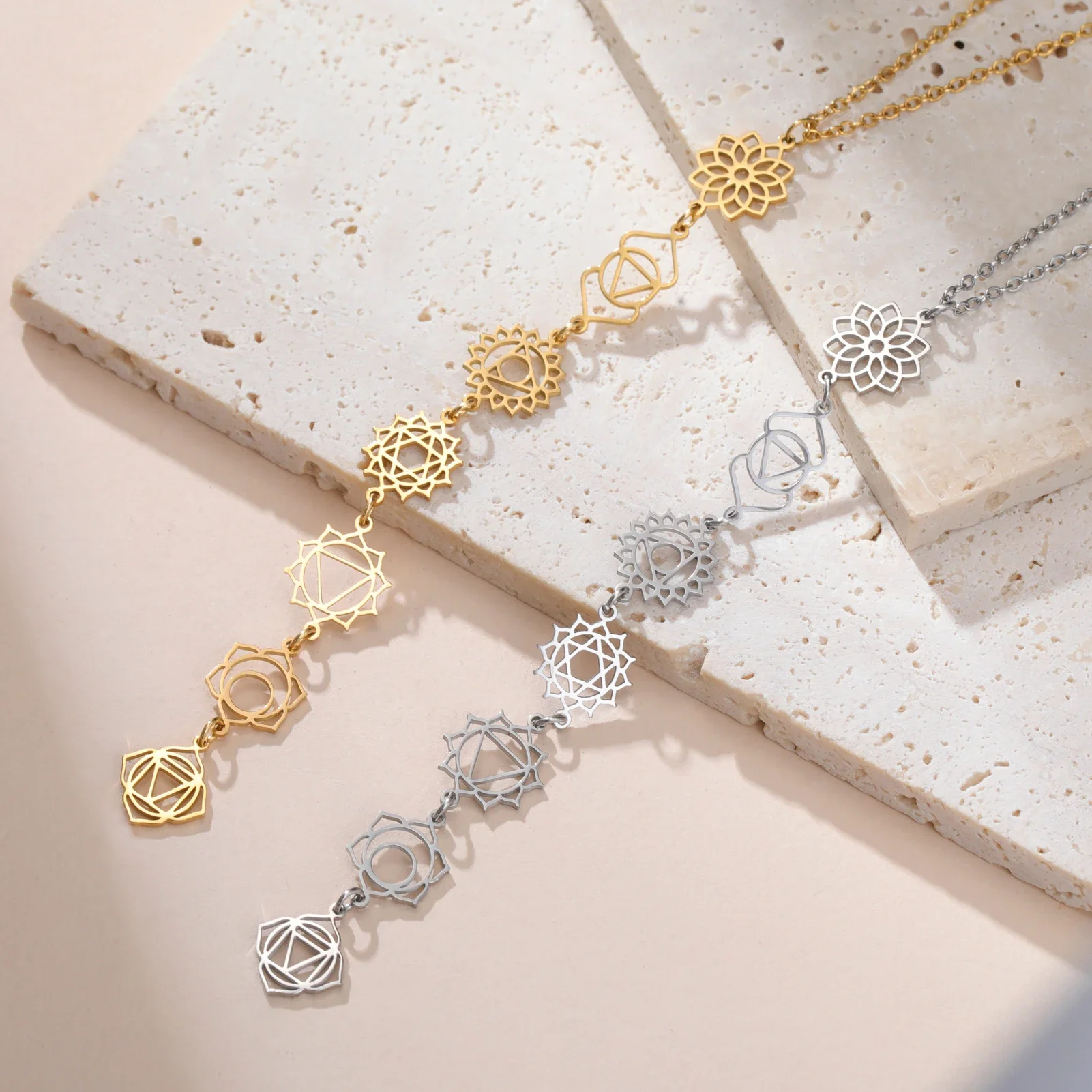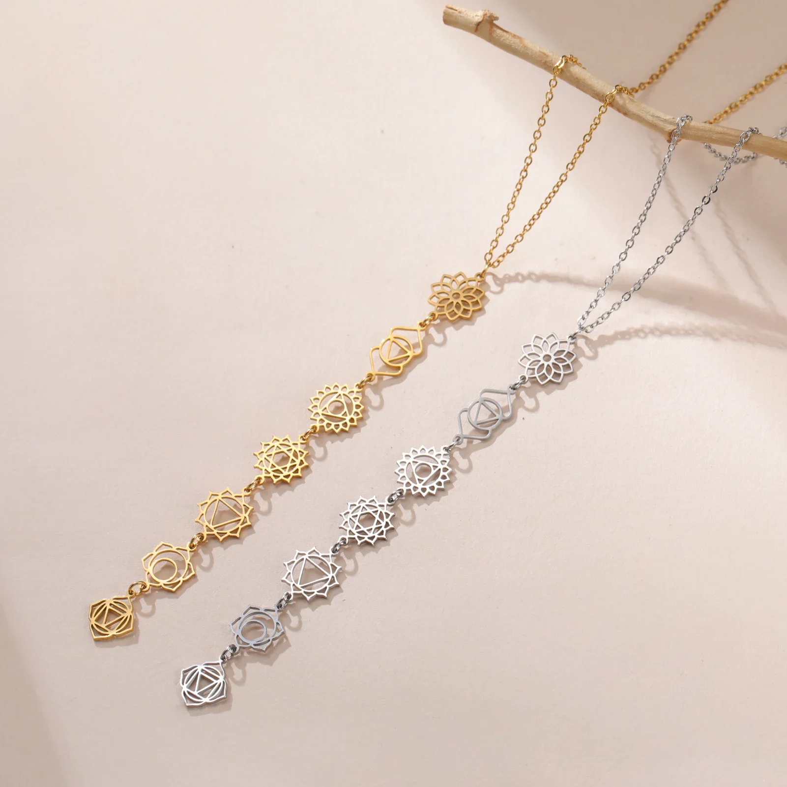 Cazador Stainless Steel 7 Chakra Flower Pendants Necklaces for Women Yoga Meditation Jewelry Amulet Necklaces Birthday Gift 2025