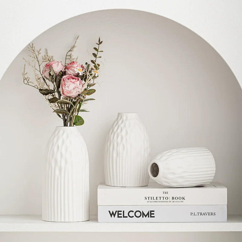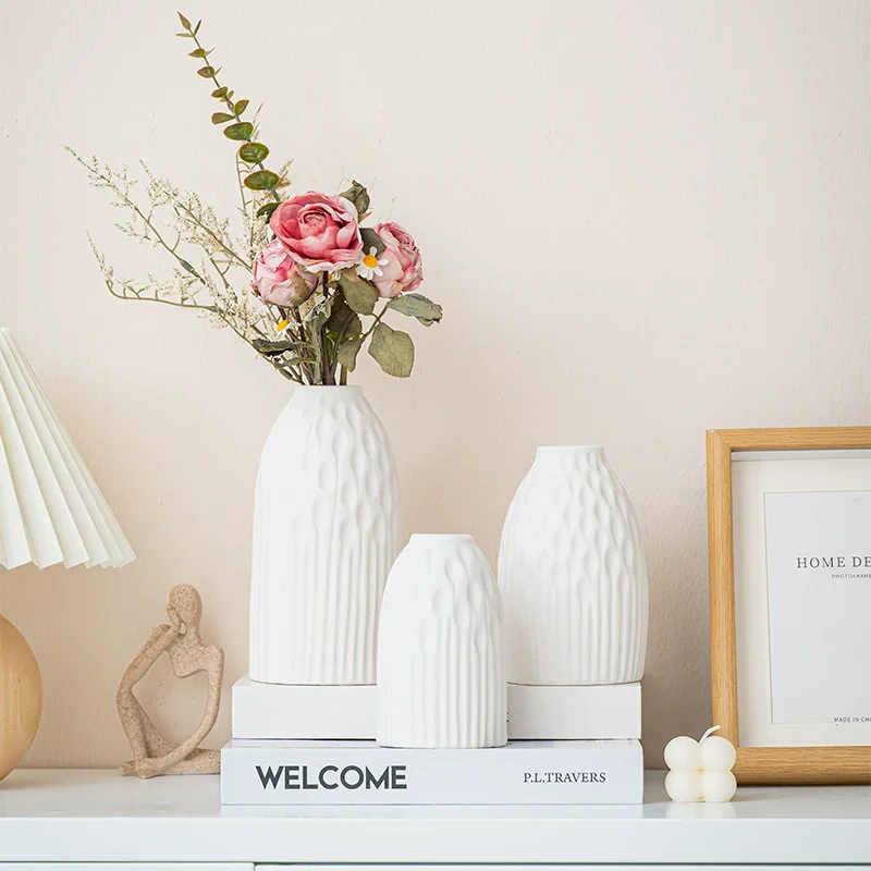 Ceramic Vases Set of 3 White Round Design Handmade Terracotta Flower Pot Home Decor Christmas Decoration Table Centerpiece