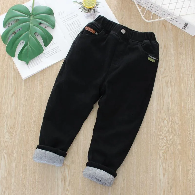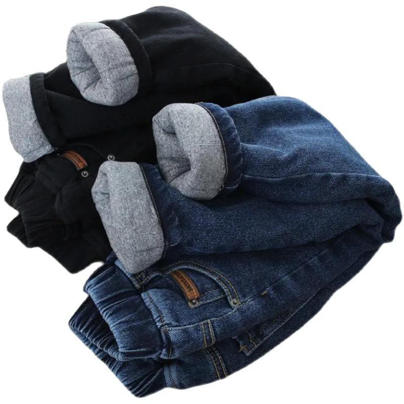 Children's Winter Warm Jeans Solid Plus Velvet Elastic Waist Kid Boy Haren Pants Vintage Soft Cotton Toddler Boy Carrot Trousers