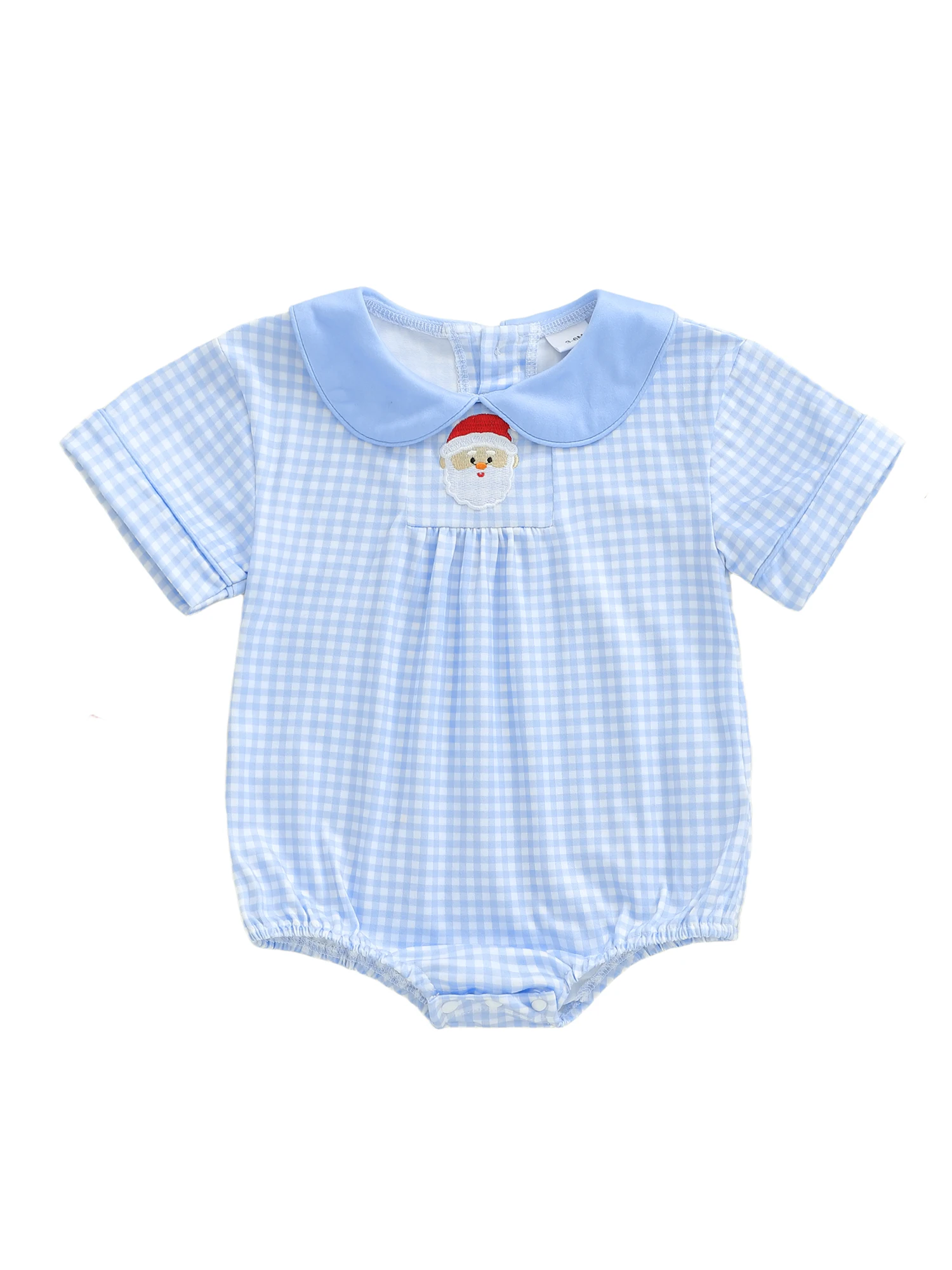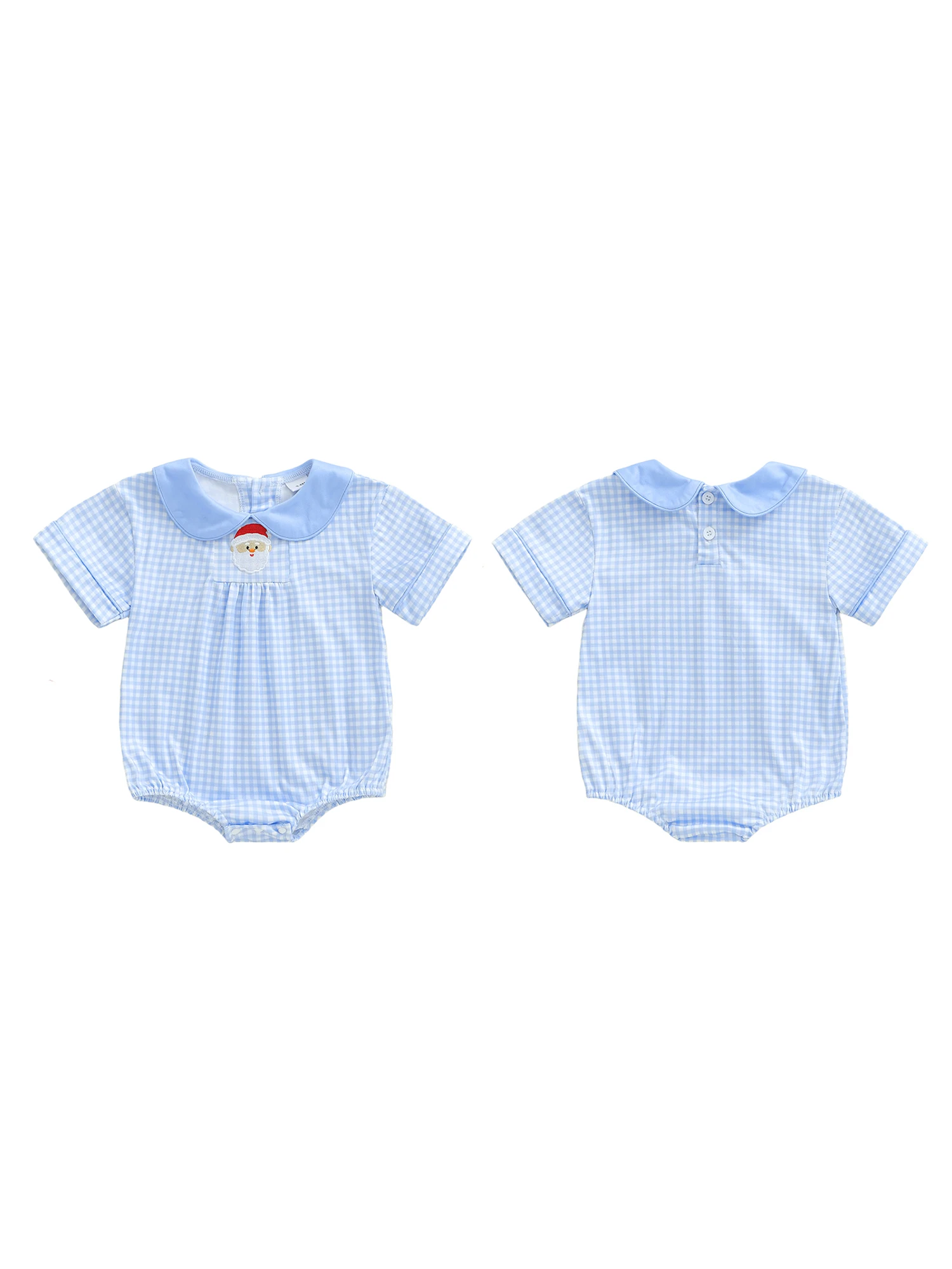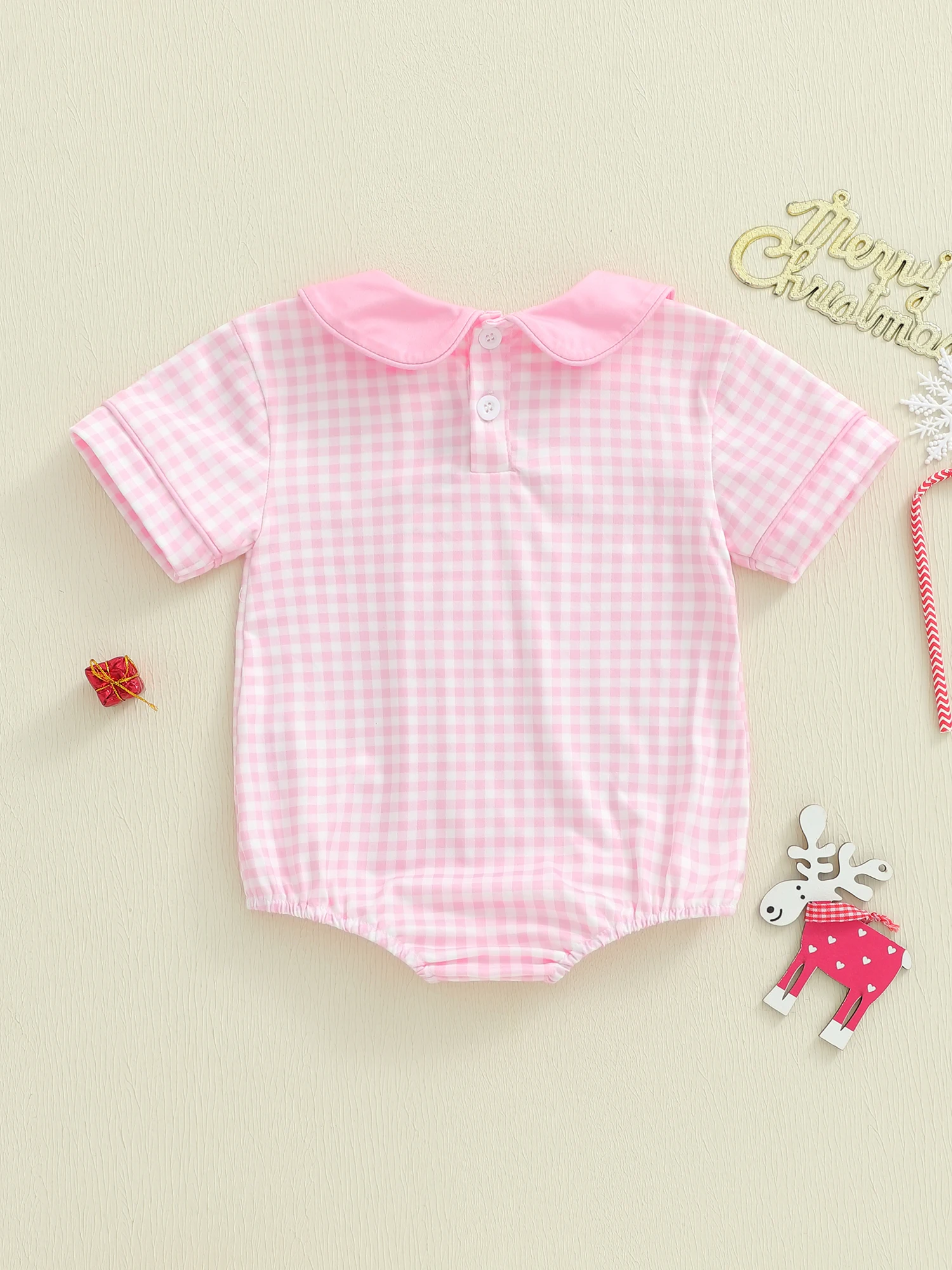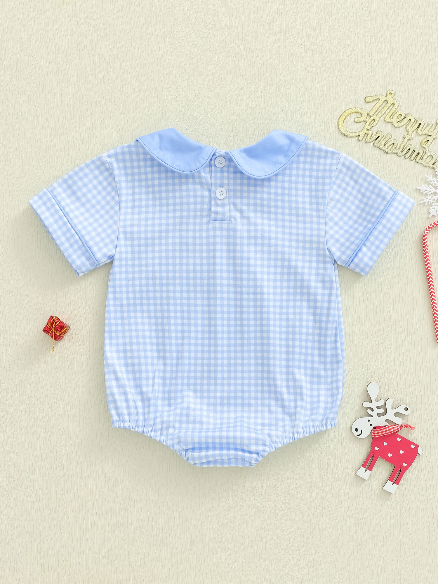 Baby Girl Boy Christmas Romper Plaid Santa/Gingerbread Embroidered Short Sleeve Doll Collar Bodysuit