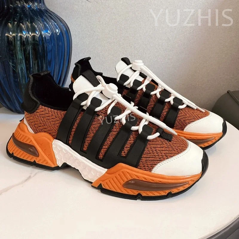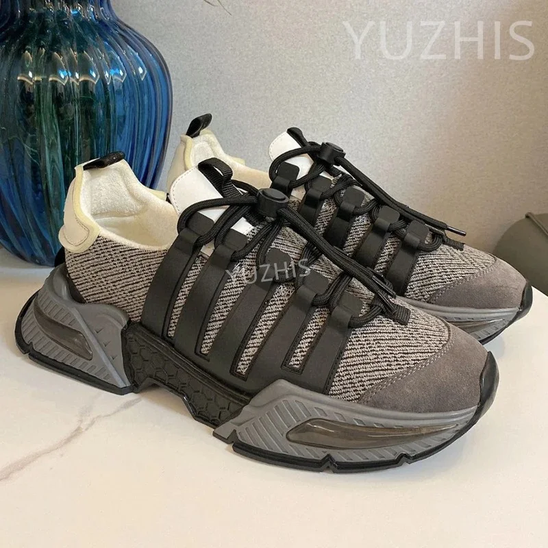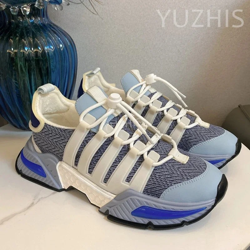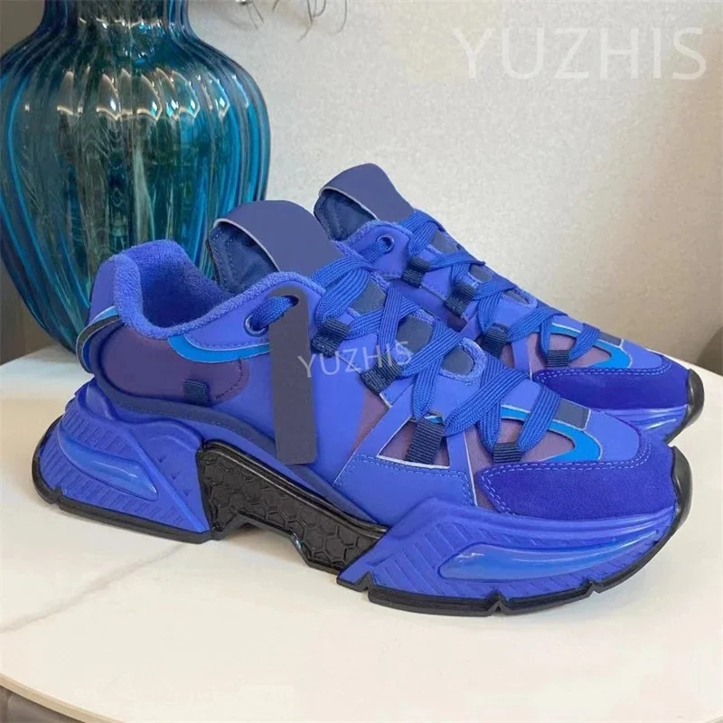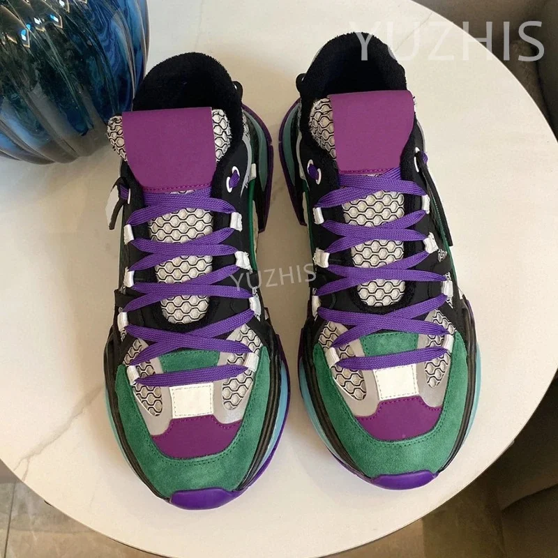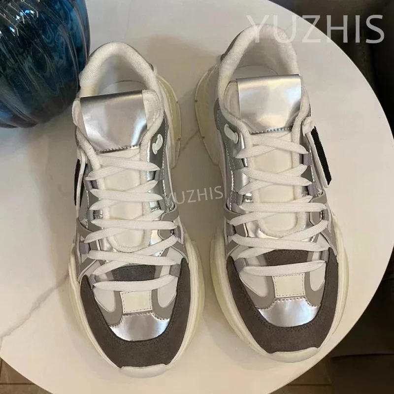 Couple Sneakers Women Lace Up Round Toe Flat Casual Shoes Patchwork Platform Running Shoes Outdoor Sports Shoes Men