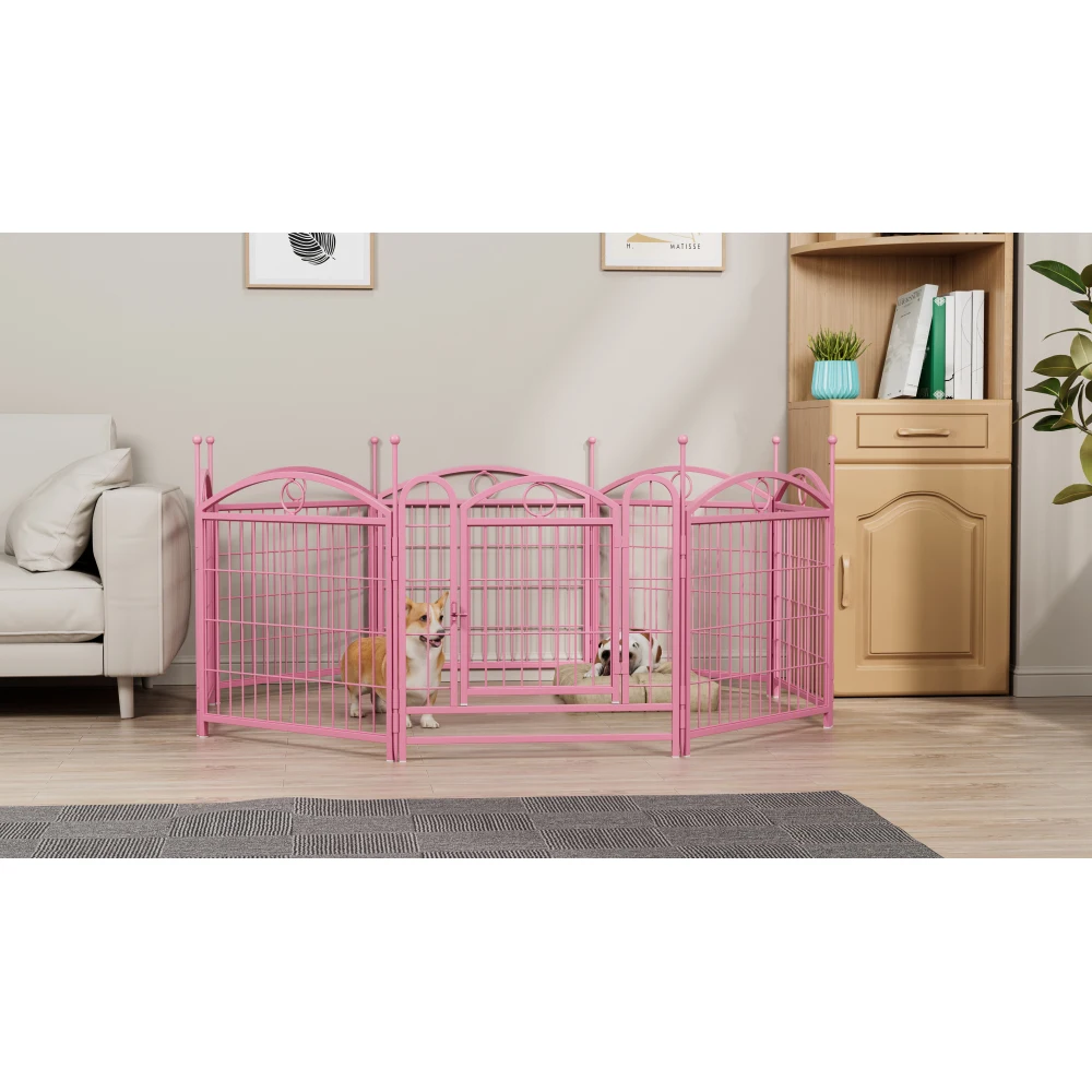 A Win-Win Solution: The Dog Playpen is designed to bring a win-win solution to you and your lovely dog. Different from a narrow enclosure cage or kennel, the dog pen provides a spacious semi-open activity area specifically for your dog. Your dog will have fun in its safe and sturdy kingdom. Meanwhile, you can take a real break and be truly relaxed without worrying about your beloved pet. - Anti-Rust & Stable: The dog fences for the yard take in new technology that crafted with silver powder-coated on heavy-duty thickened iron, come to be highly rust & corrosion resistant, waterproof and anti UV. Enable to increase longevity and durability whatever indoor or outdoor. Coupled with heavy-duty thickened metal pipes add to the stability of the dog pen.
