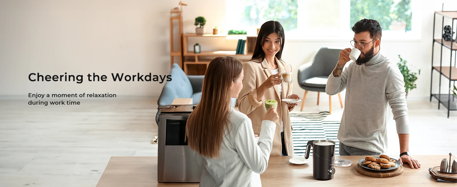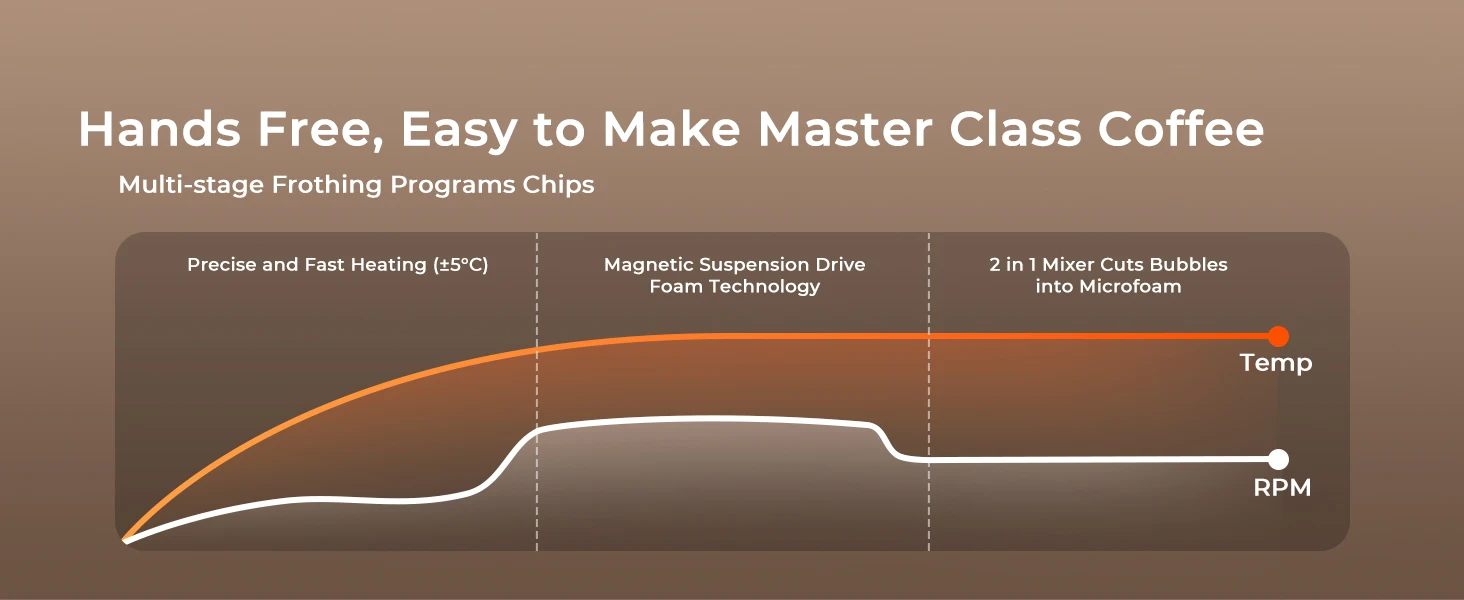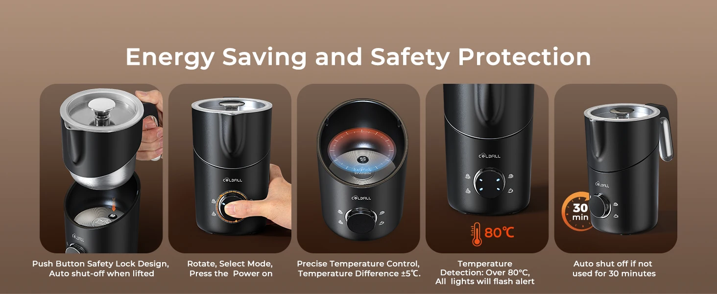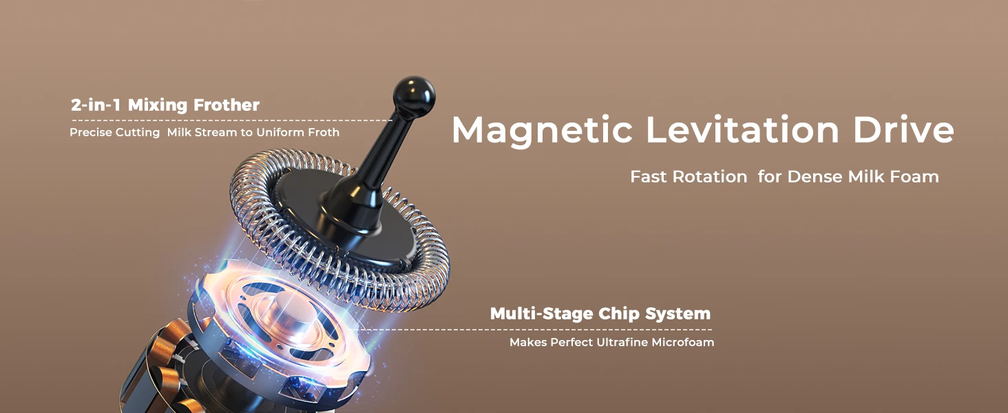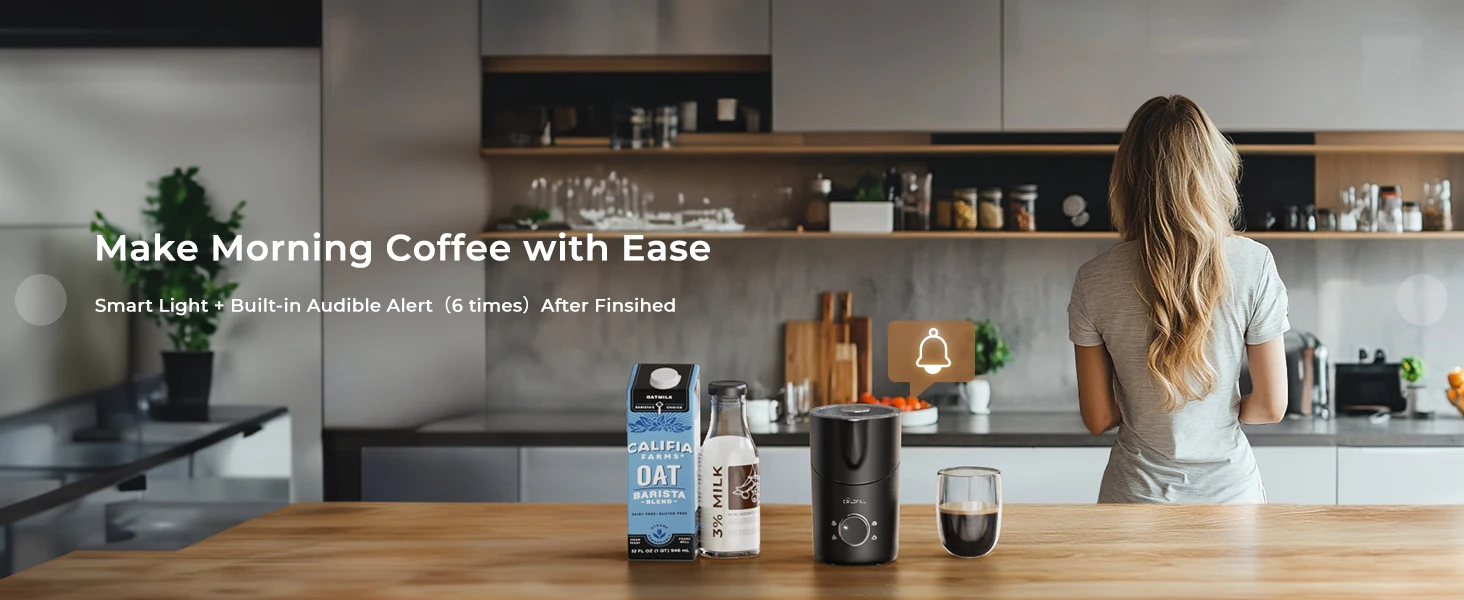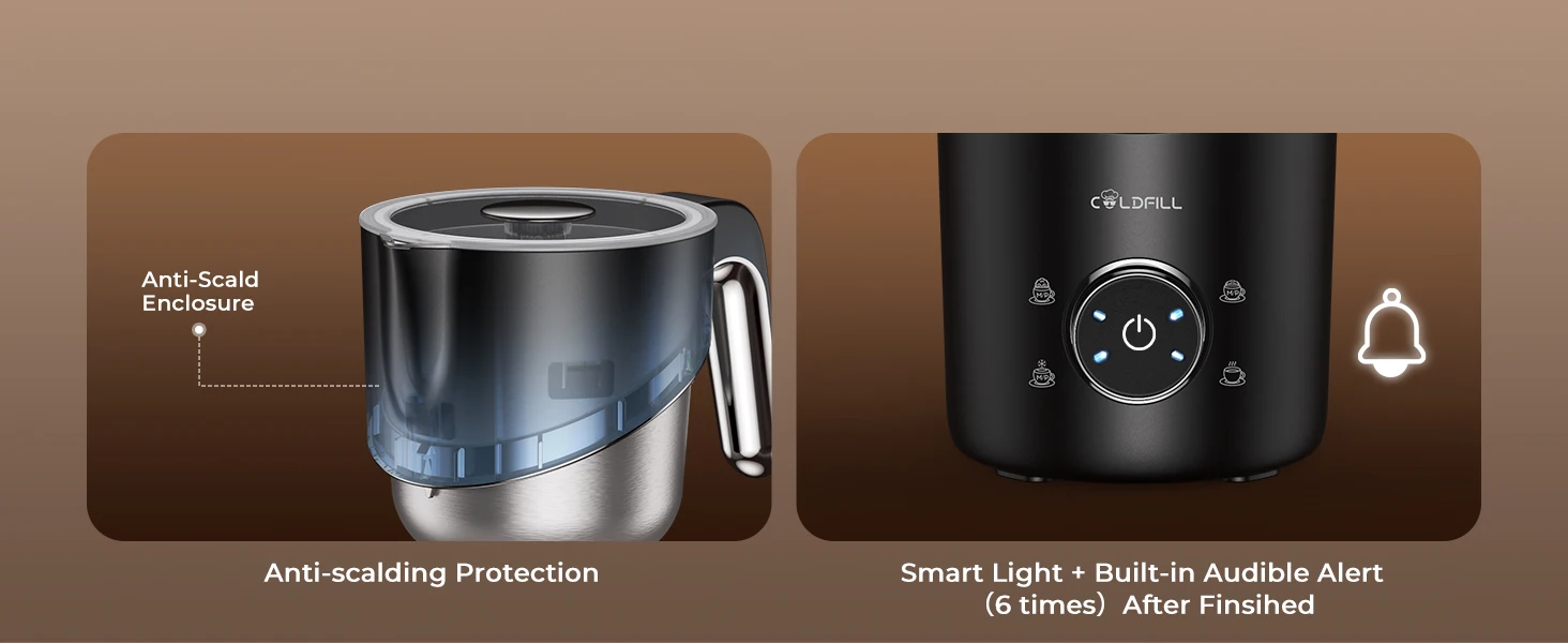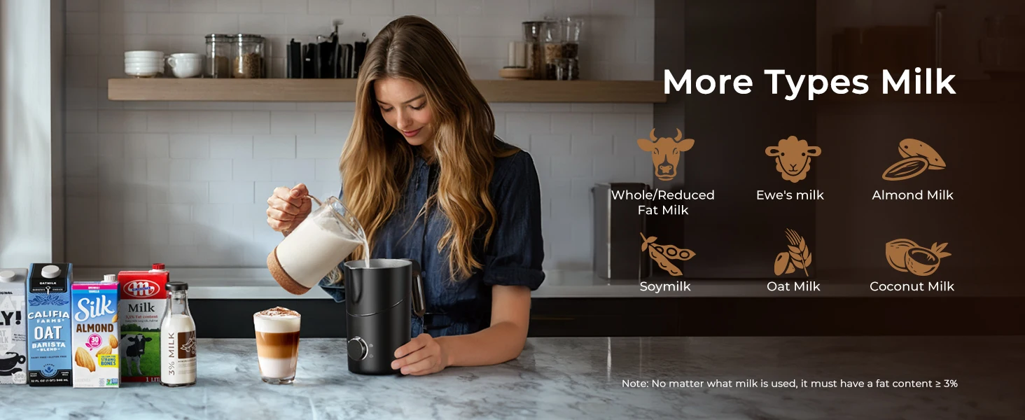 This electric milk frother operates automatically, saving you time and effort in preparing your coffee beverages.