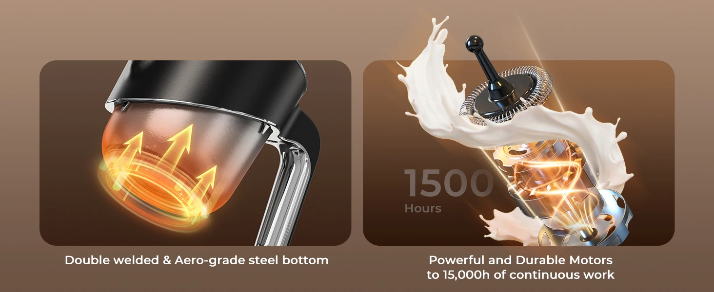 Constructed with durable materials, this milk frother is built to last, providing long-term use for your coffee-making needs.