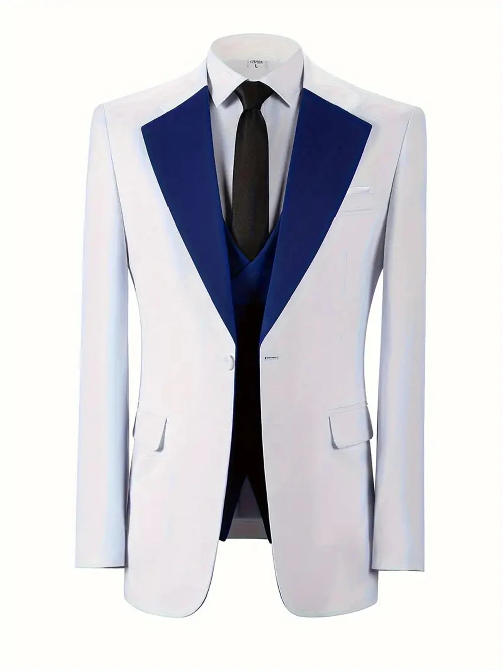 Fashion Men's Suits 3 Piece Groom Bestmen Slim Fit Wedding Prom Party Tuxedo Elegant Formal Events Dress Suit (Blazer+Vest+Pant)