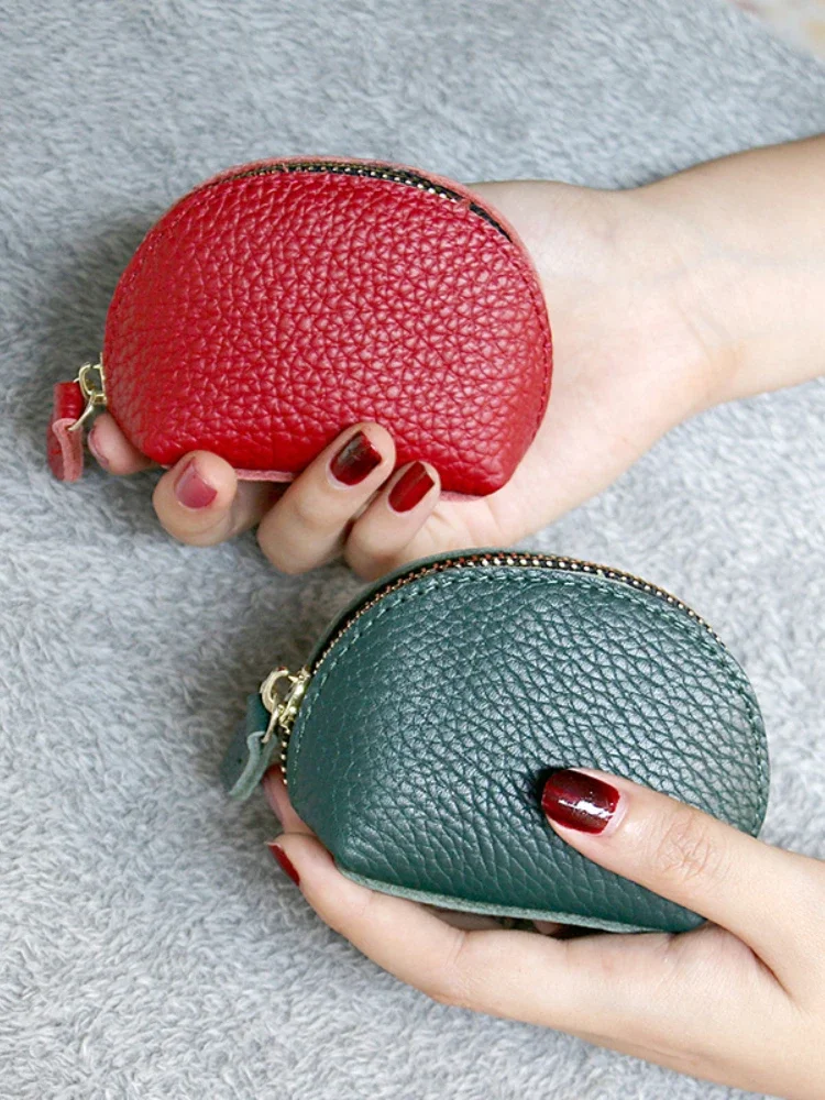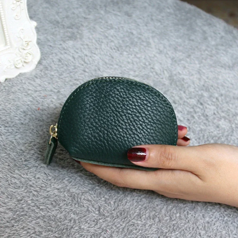 Fashion Style Shell Coin Purse Mini Change Wallet Genuine Leather Key Coin Storage Bag Women Zipper Small Wallet Mini Purse