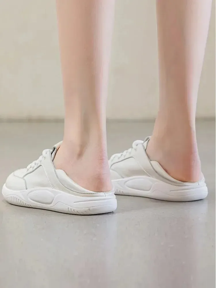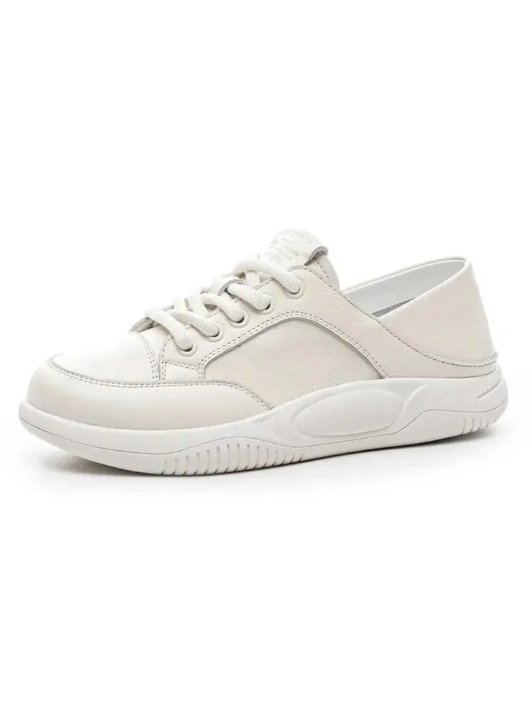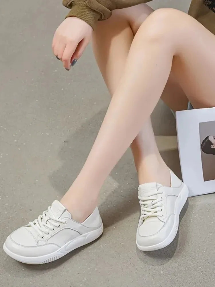 Flat cow skin shoes for women informal comfortable and breathable sneakers white