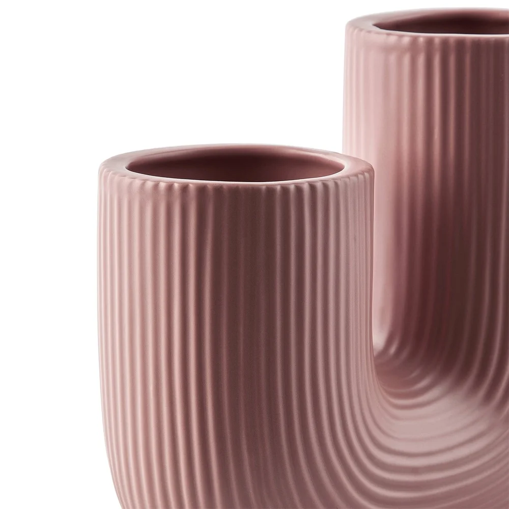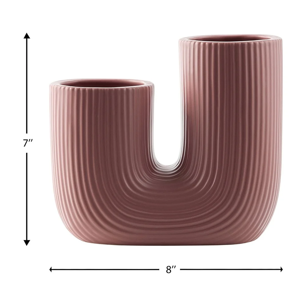 Fluted Ceramic Vase U Shape Decorative Home Accent Flowers Bouquets Indoor Use Elegant Modern Design Ideal Shelf Table Decor