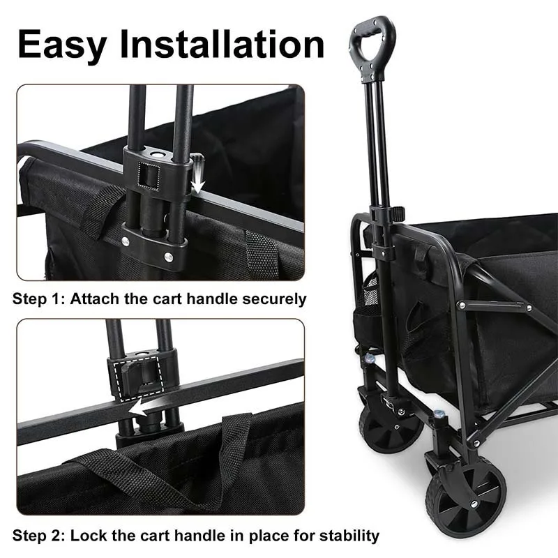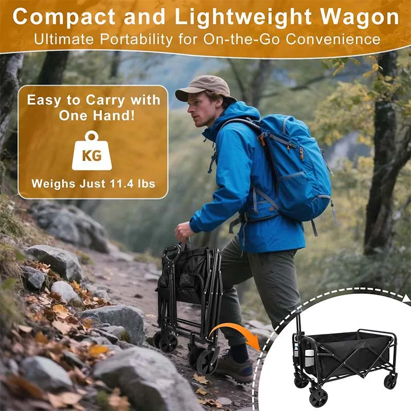 [360° Spinner] This foldable trolley features 360° swivel wheels, ensuring smooth and effortless control, making pushing and pulling a breeze.