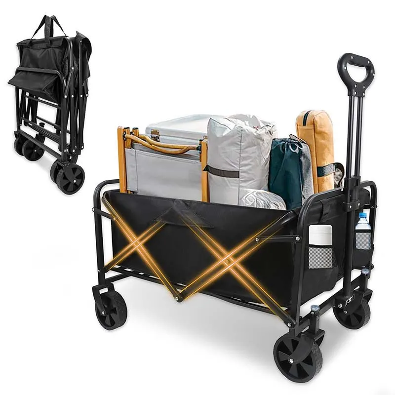 Foldable 4-wheeled cart, large capacity garden cart with wheels, heavy-duty multi-purpose grocery cart for shopping and camping
