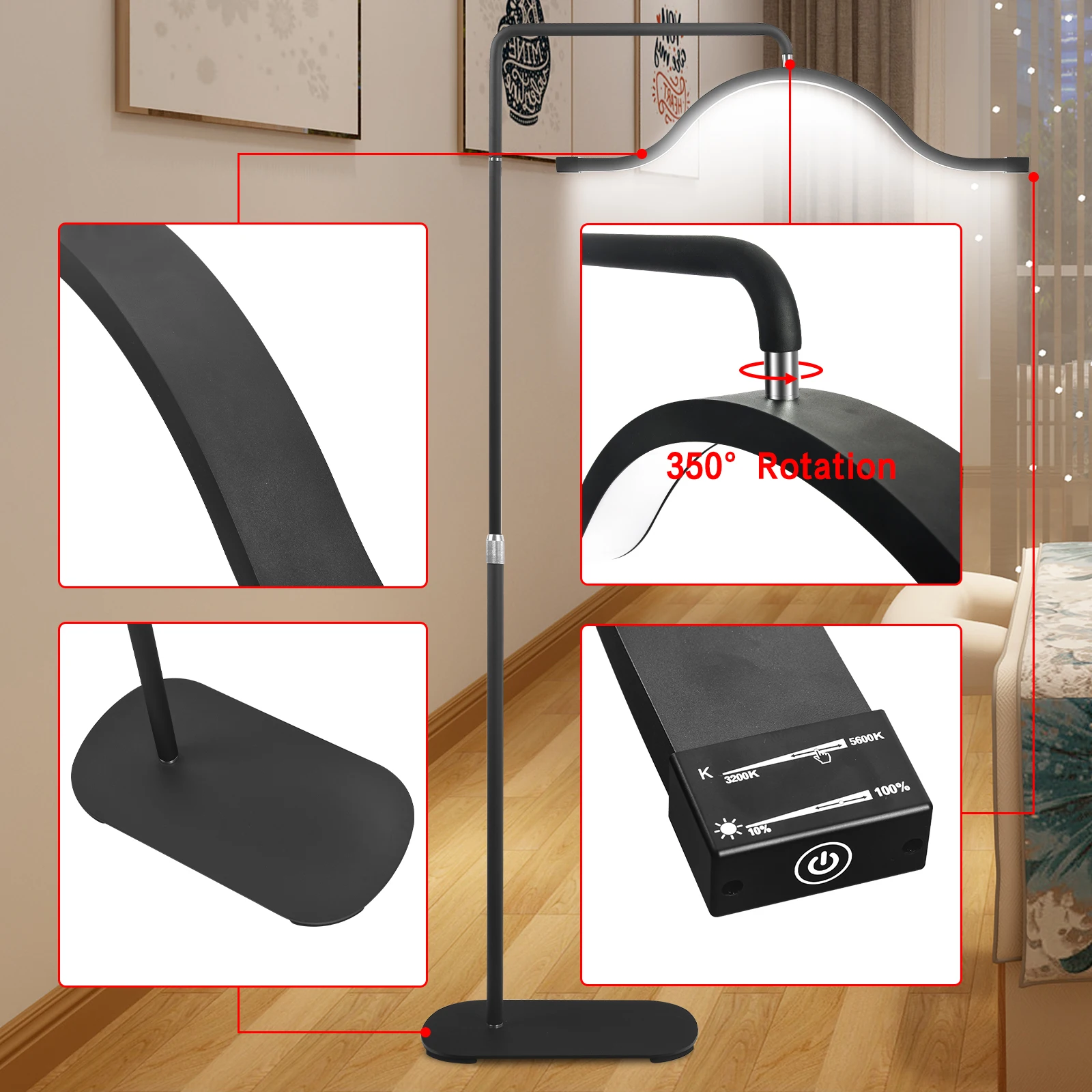 Fosoto 45W Half-Moon LED Floor Lamp – Shadow-Free Ring Light for Lashes, Facials, Tattoo, and Video Streaming