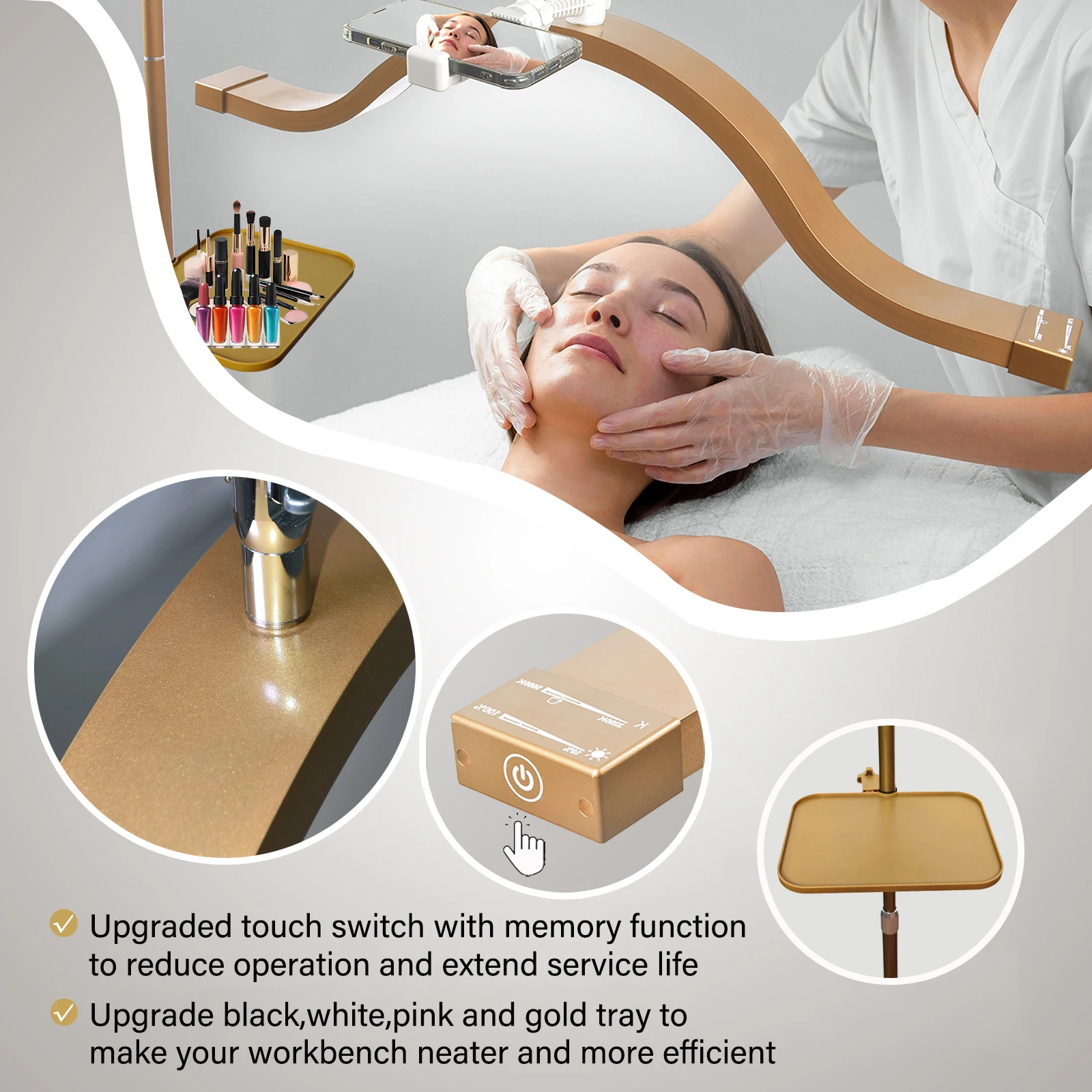 【Half-moon Light】fosoto special half-moon shape design with floor stand, It will make your work without any shadow obstruction.with 320pcs high-quality lamp beads, 45W high power and 95+ high color rendering.suitable for lash,eyelash,tattoo,desktop vlog, beauty salon live streaming, beauty project,nail enhancement etc.