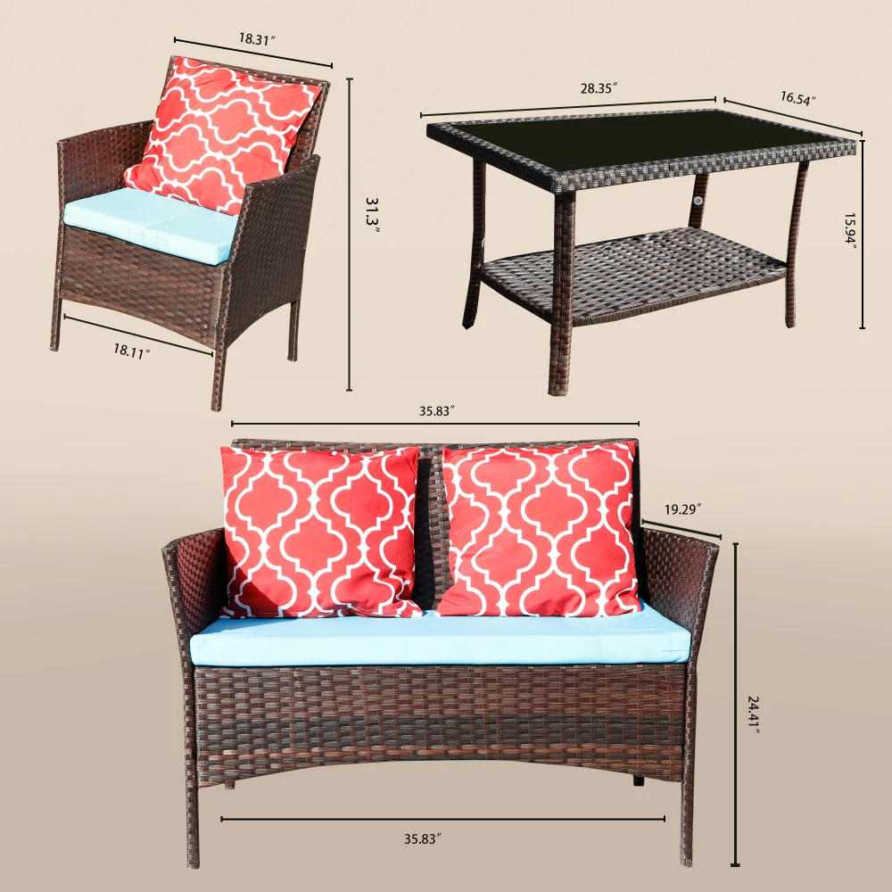 Weatherproof & Fade Resistant - No need to worry about any accidental drizzle, because our TPU-coated cushion covers are water-repellent. Made of high-quality PE rattan, they are also UV-resistant, fade-resistant, and wear-resistant, helping keep your outdoor furniture set looking fresh.