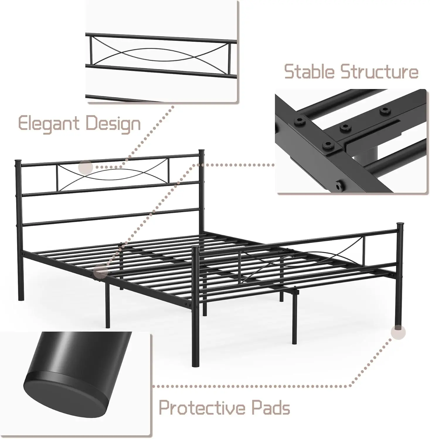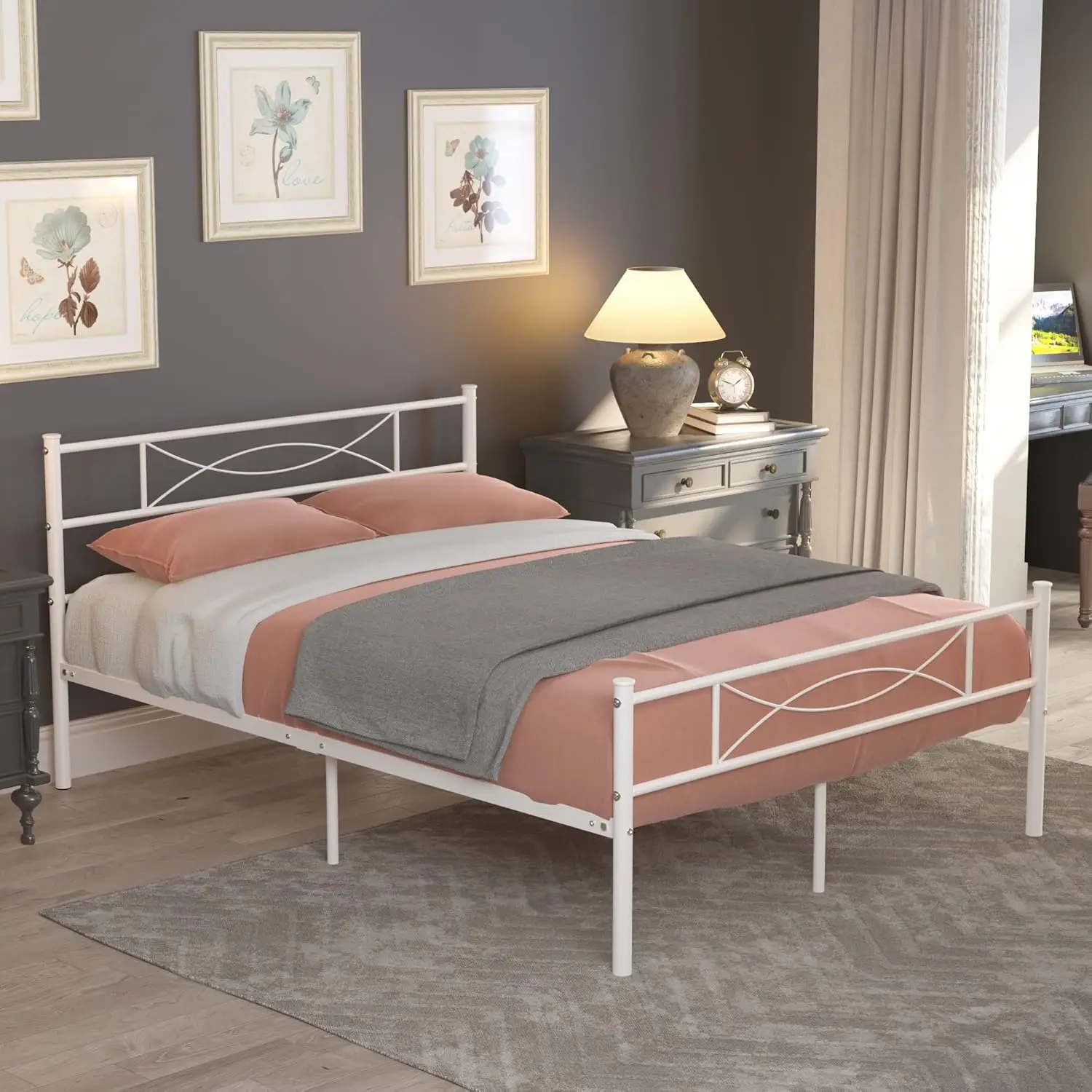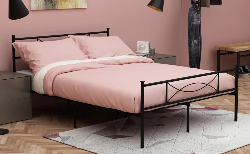 Twin bed frame features a headboard and footboard, an elegant addition to a toddler, guest or kid bedroom, the bed frame's metal slats offer quality mattress support.
