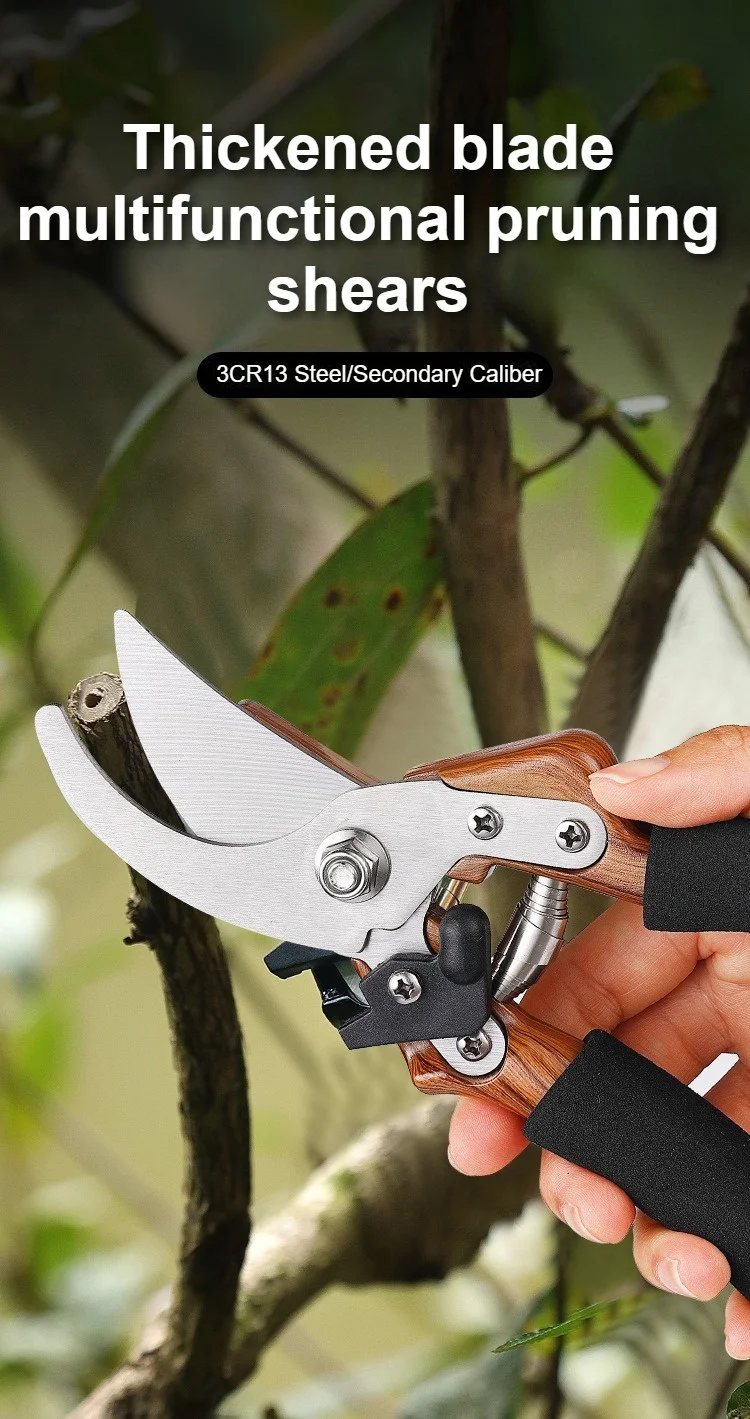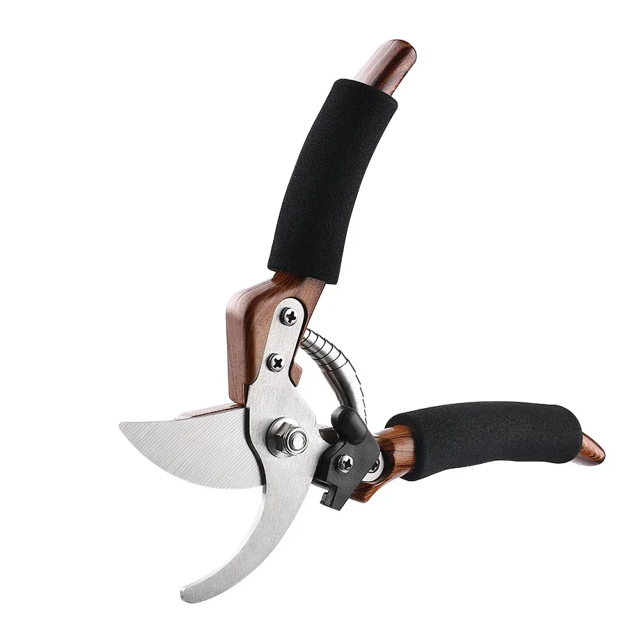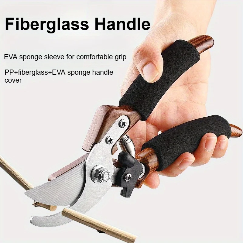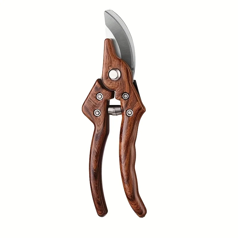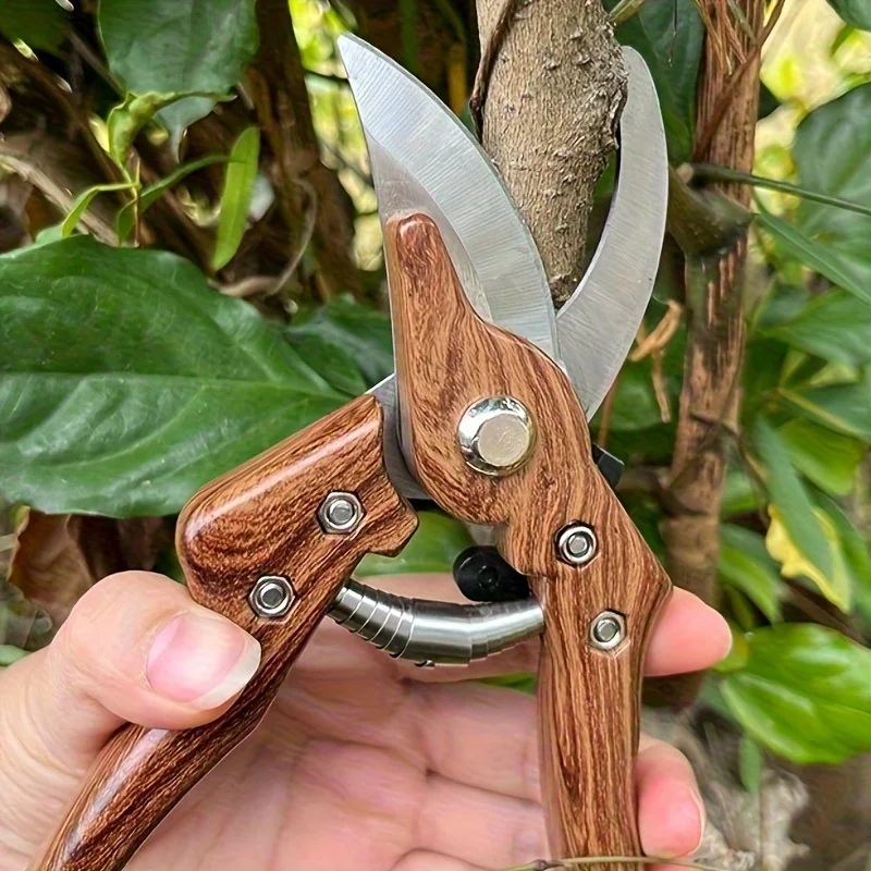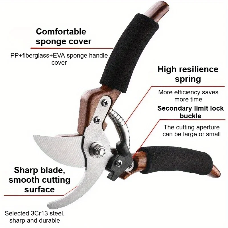 Garden Pruning Shears - Labor-Saving Spring, Sharp Blade, Bent Head, Glass Fiber Wood Grain Sponge Handle