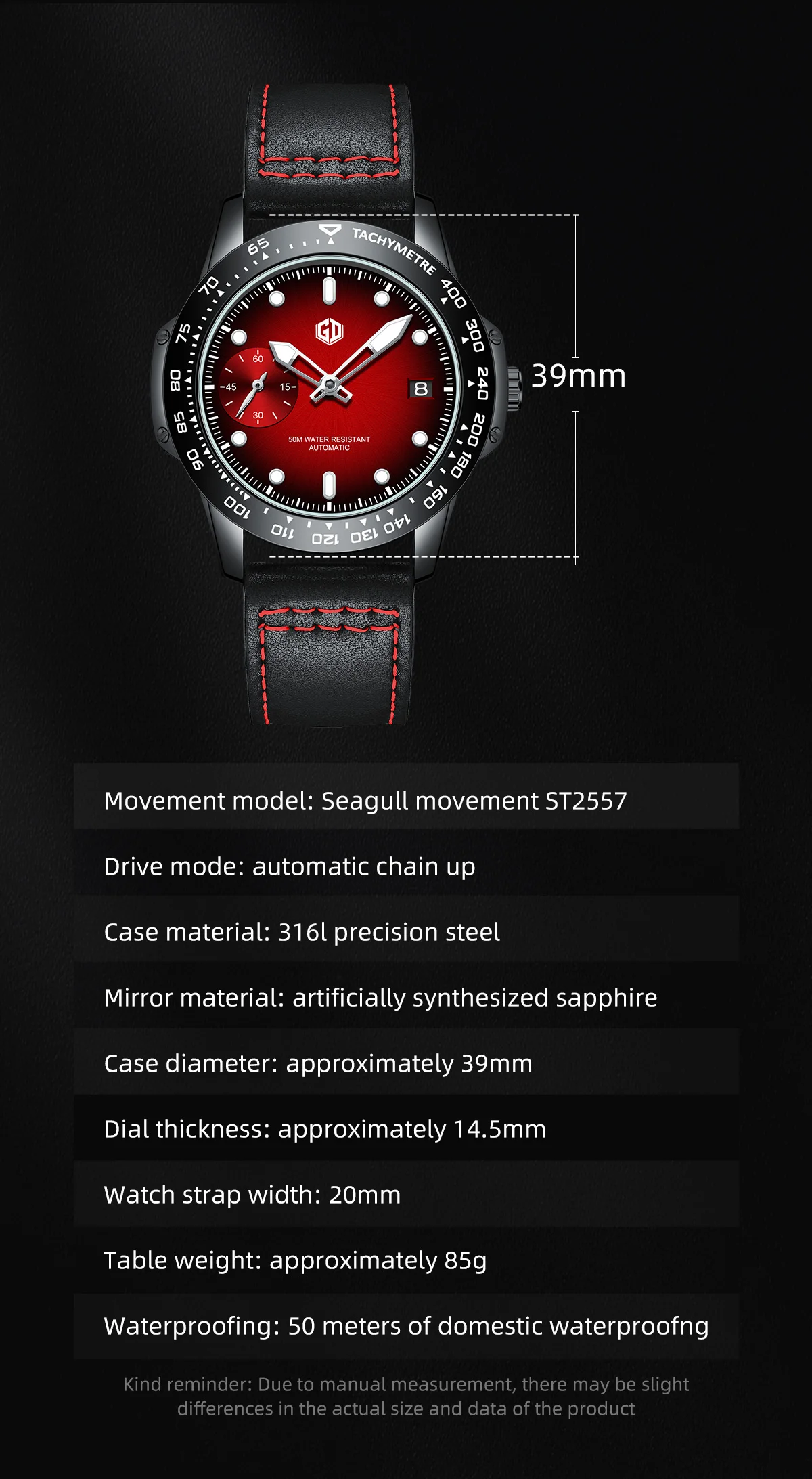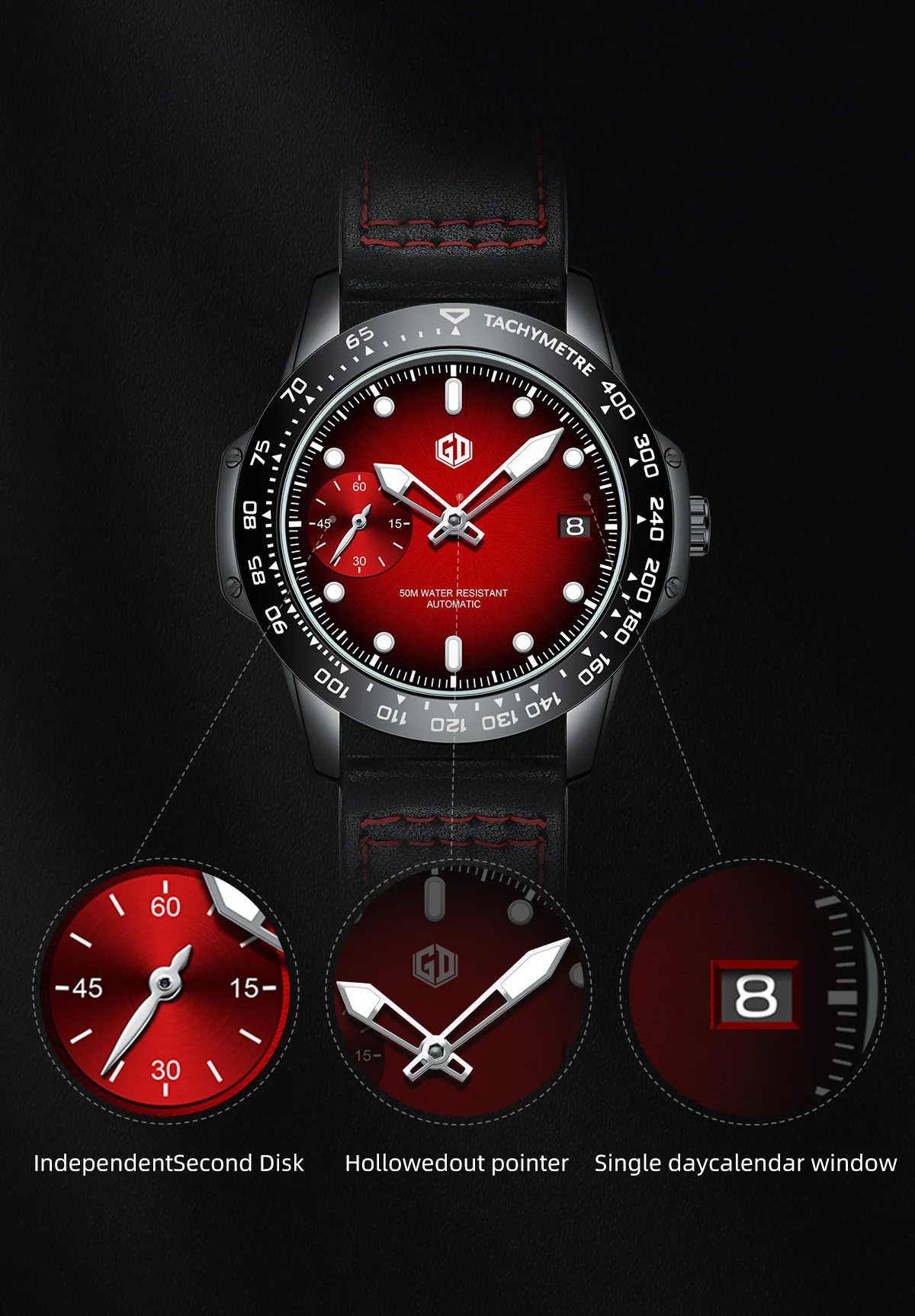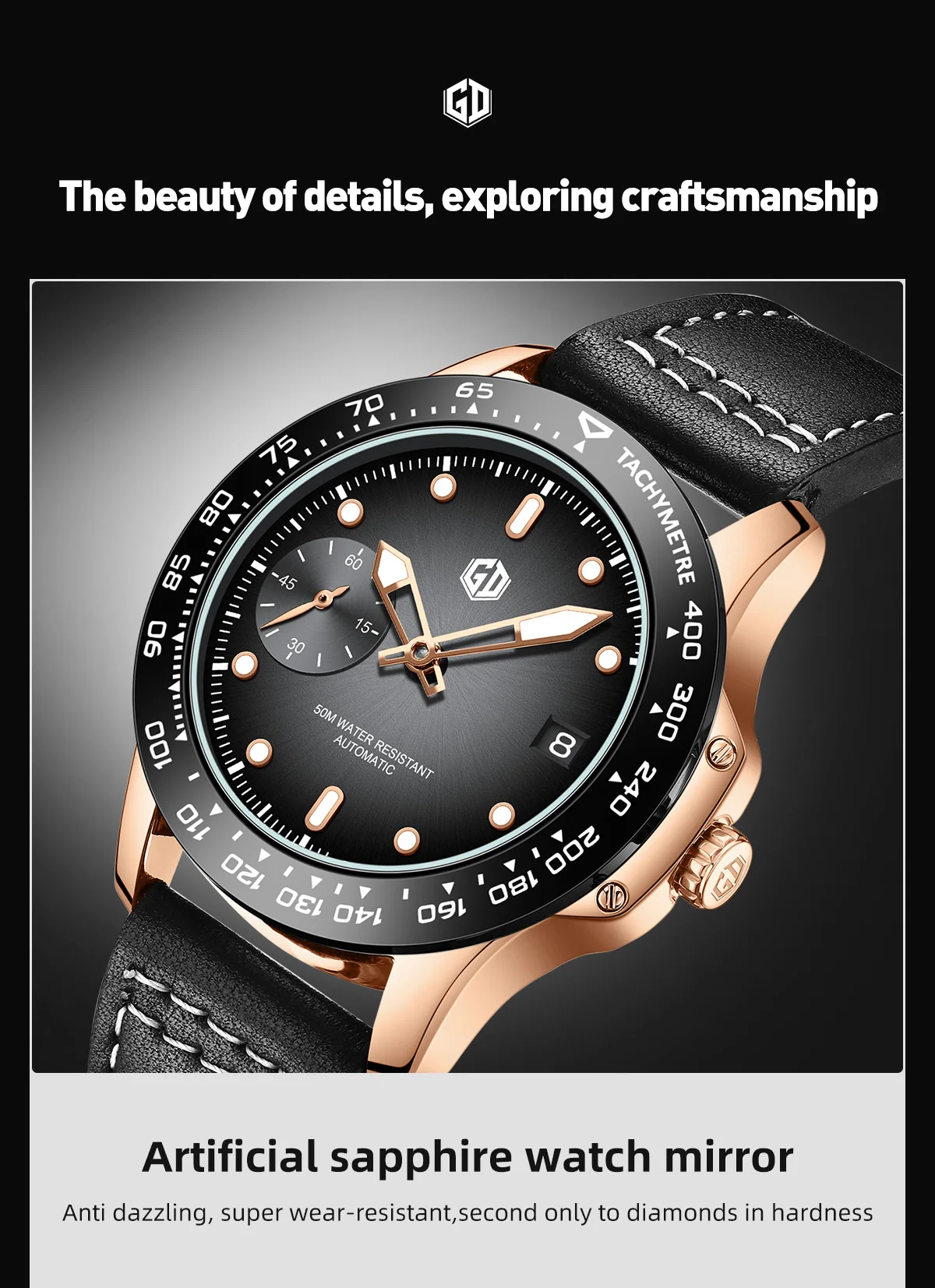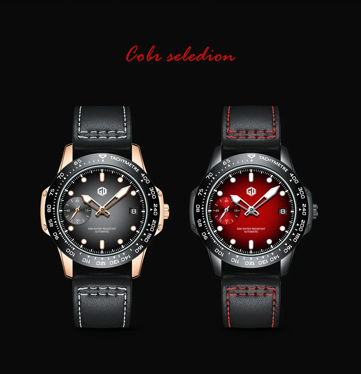 GD Seagull Movement Luxury Man Wristbatch Waterproof Luminous Date Leather Men 2025 New Watches Sports Square Men's Watch Casual