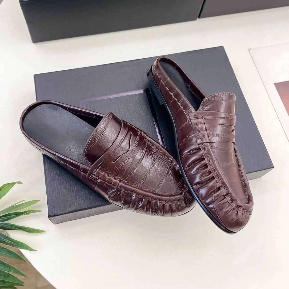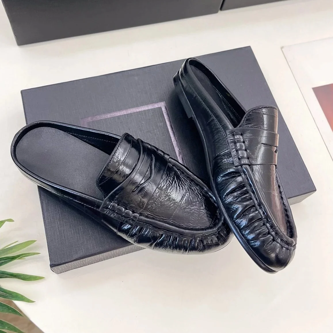 Genuine Leather Round-toes Mary Janes Slingback Gladiator Sandals Mules Loafers Female Slip-Ons Handmade Shoes Zapatos De Mujer