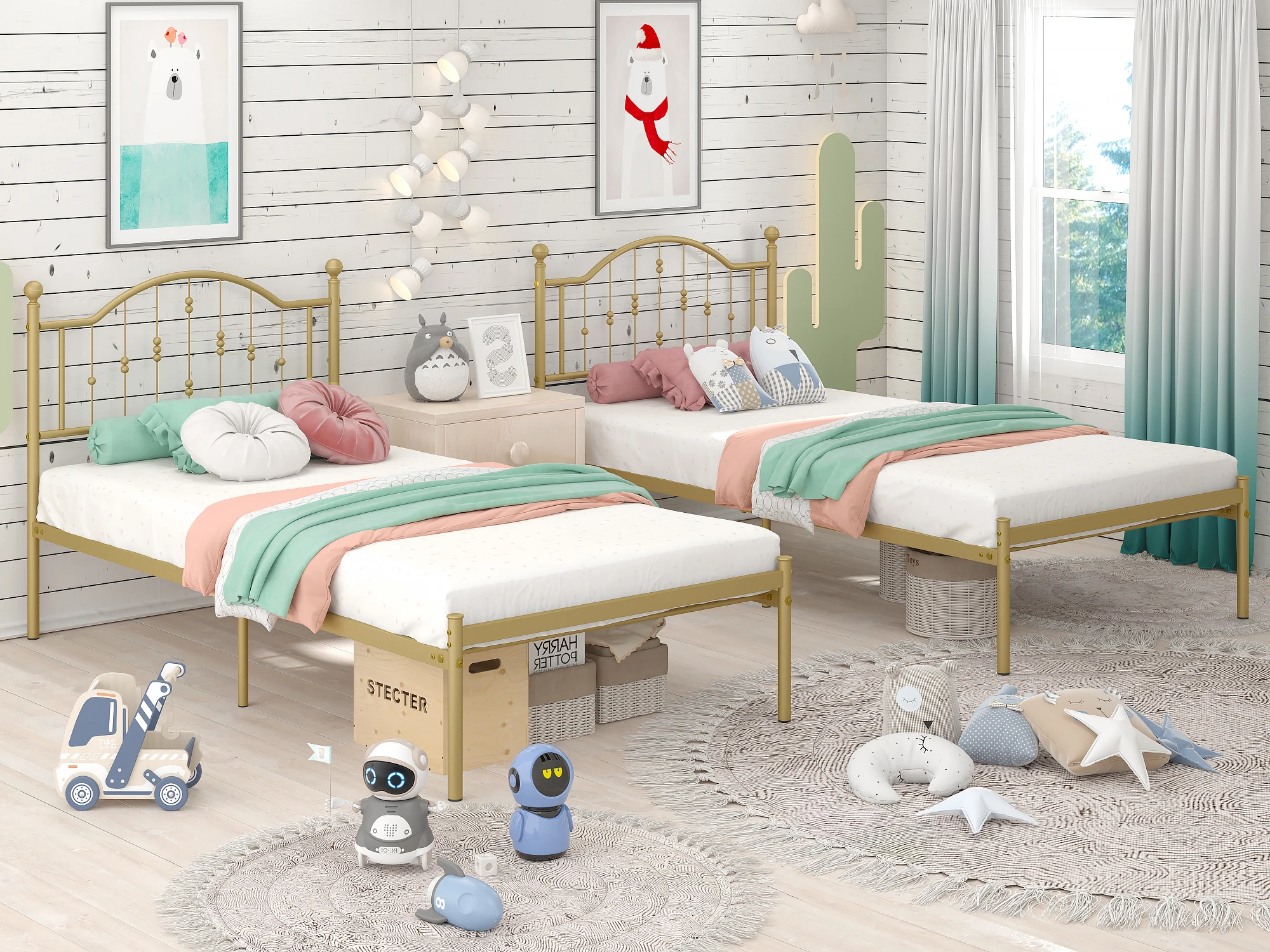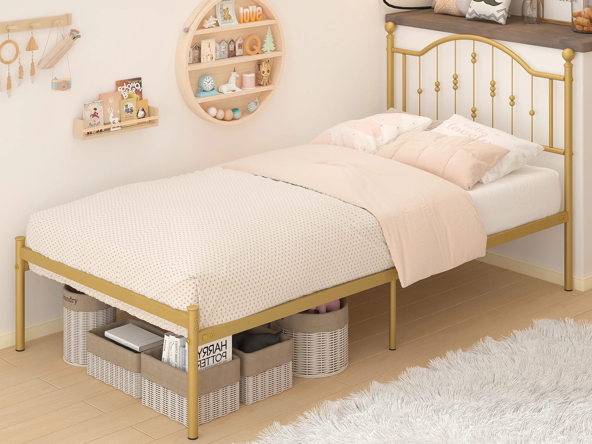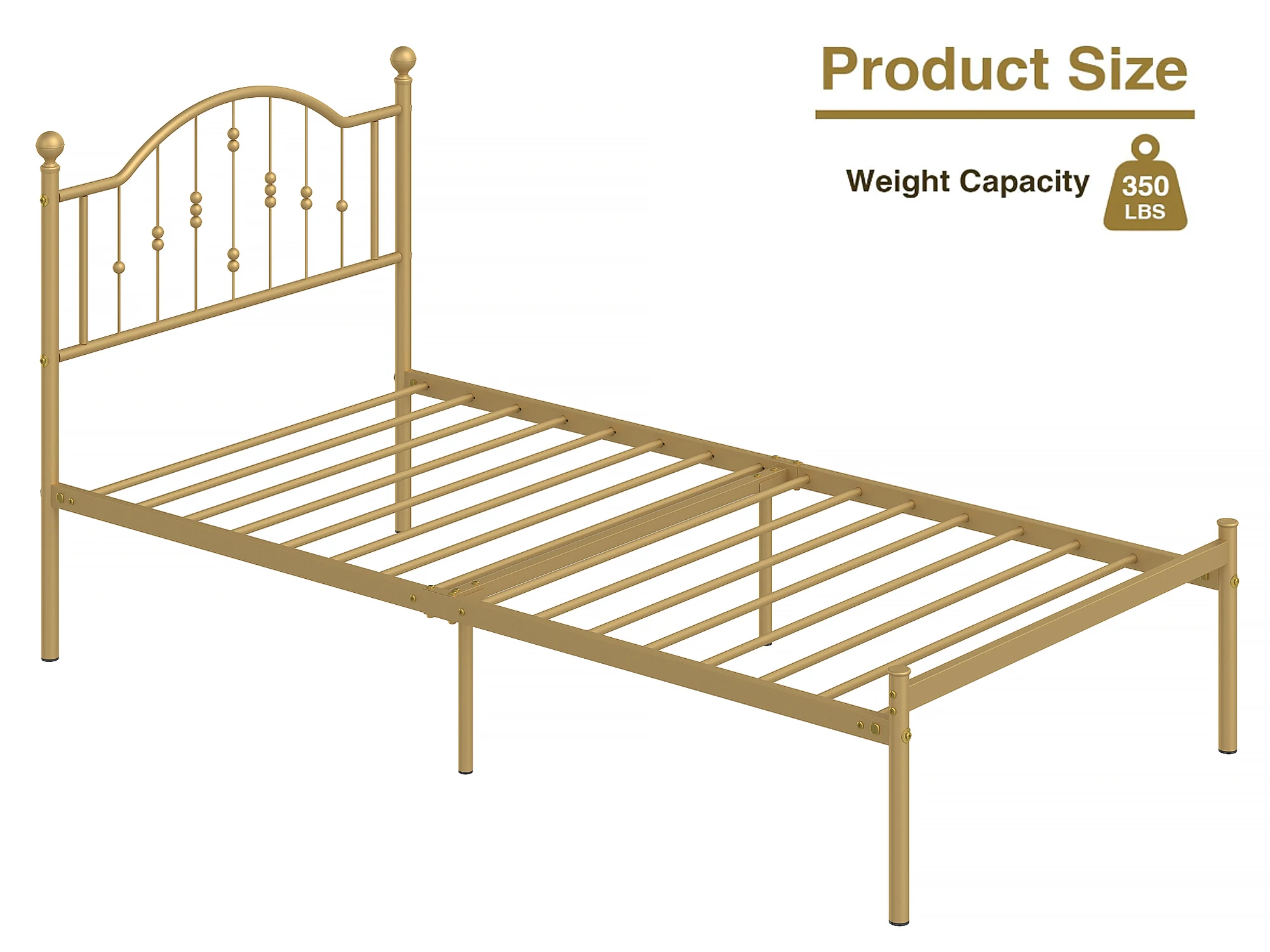 Golden Twin Size Bed Frame with Headboard Twin Metal Platform Bed