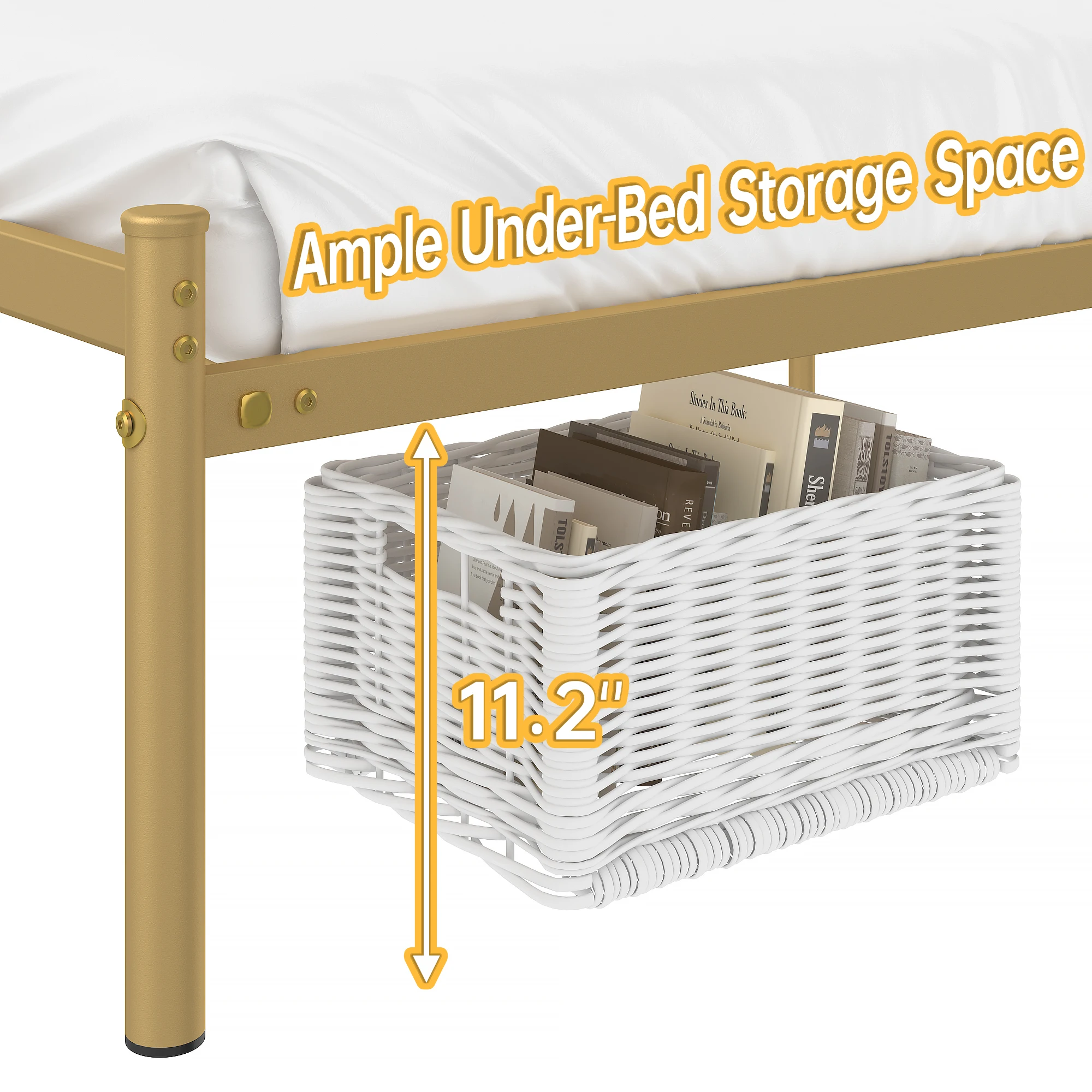 【AMPLE UNDER-BED STORAGE】The metal bed frame with 11.2 inch under-bed clearance provides plenty of space to store toys,boxes and more. Maximize your space utilization and keep your space tidy and organized