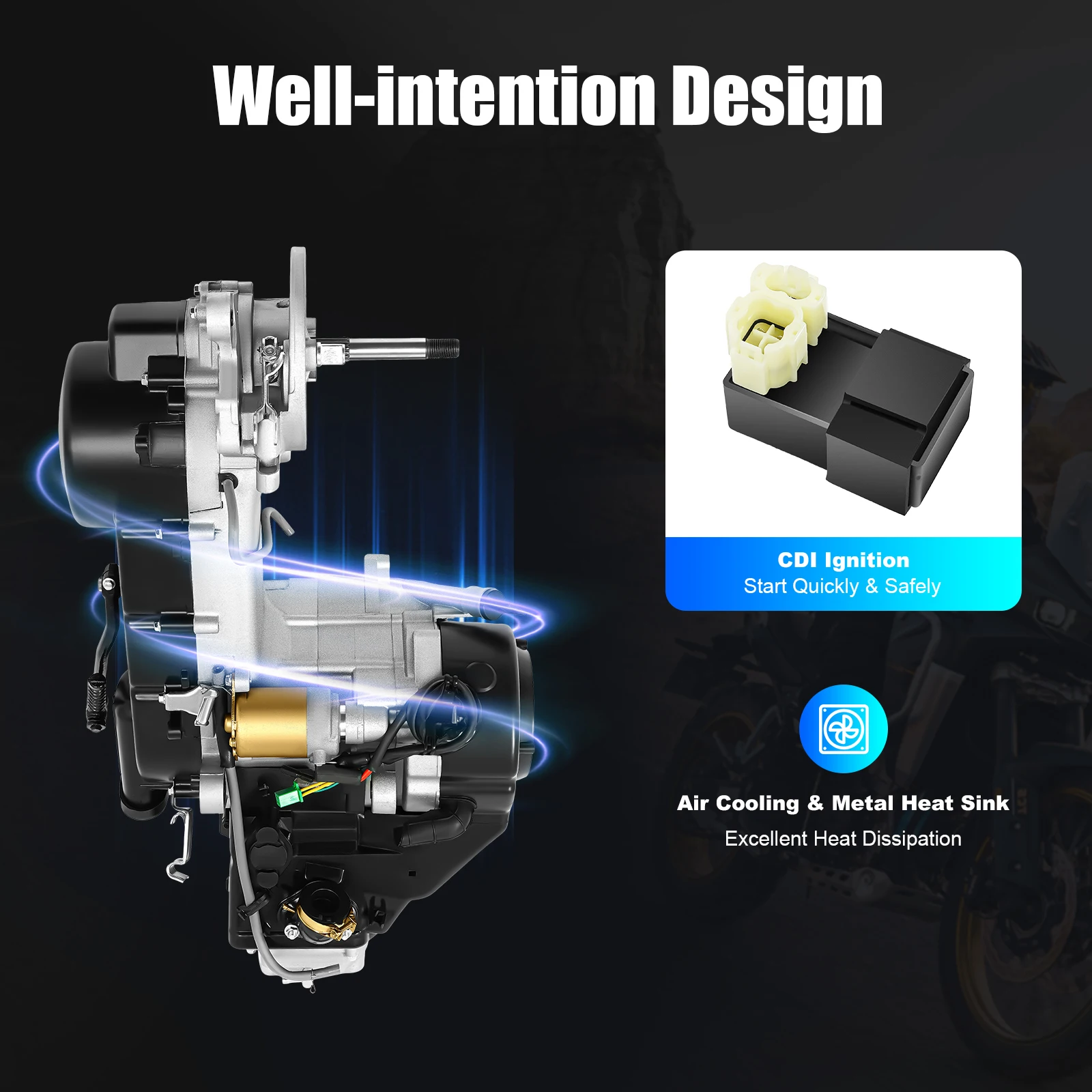 Excellent Heat Dissipation: The product is designed with powerful air-cooling, which is able to cool down the temperature quickly. In addition, the outside of the cylinder is covered with a metal heat sink, which allows the heat generated by the engine to be released directly into the air when the cooling fan blows air through the heat sink.
