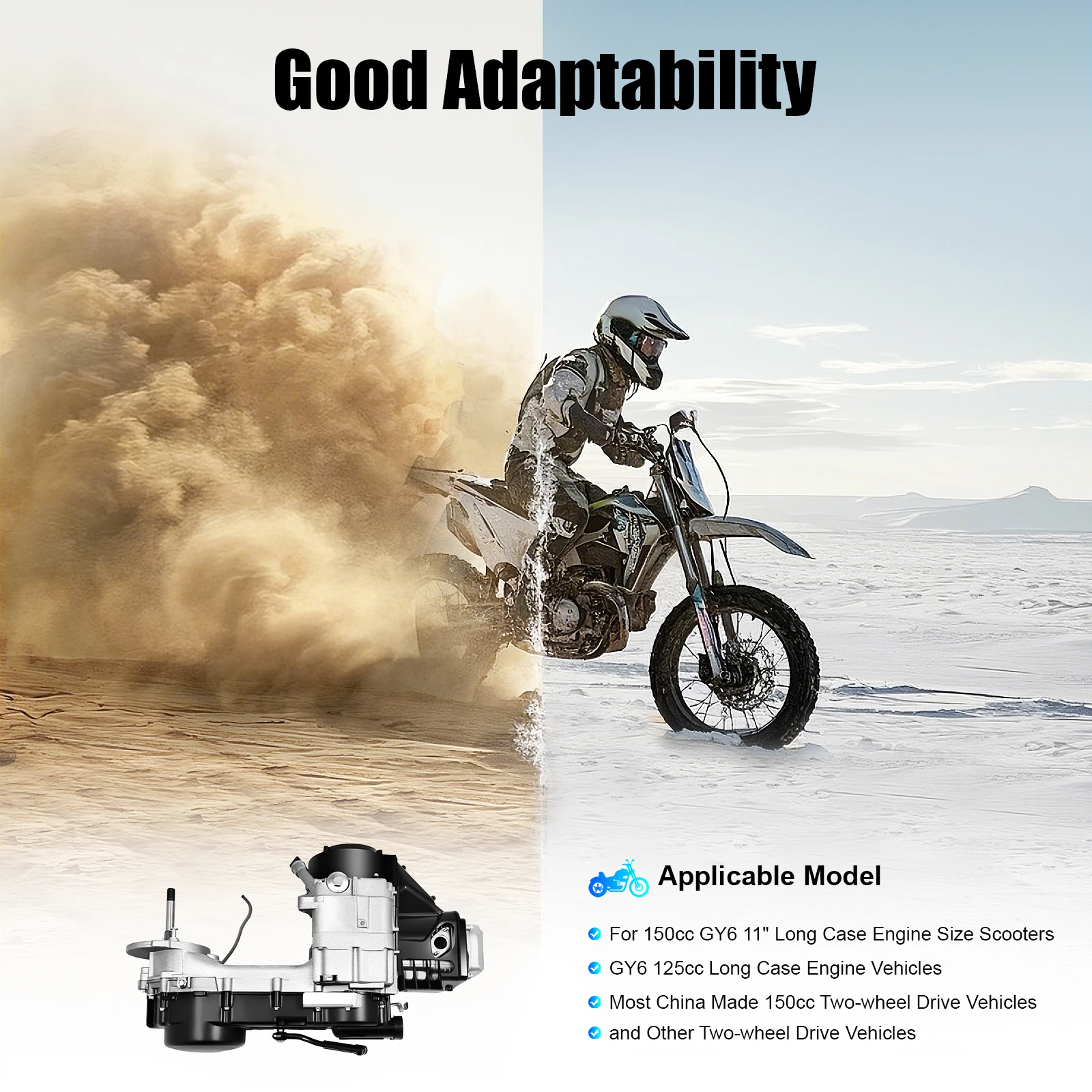 Good Compatibility: This product is compatible with the 150cc GY6 11" long case engine size scooters, GY6 125cc long case engine two-wheel drive vehicles, most -made 150cc two-wheel drive vehicles, and other two-wheel drive vehicles, so it can be compatible with the adapted models.