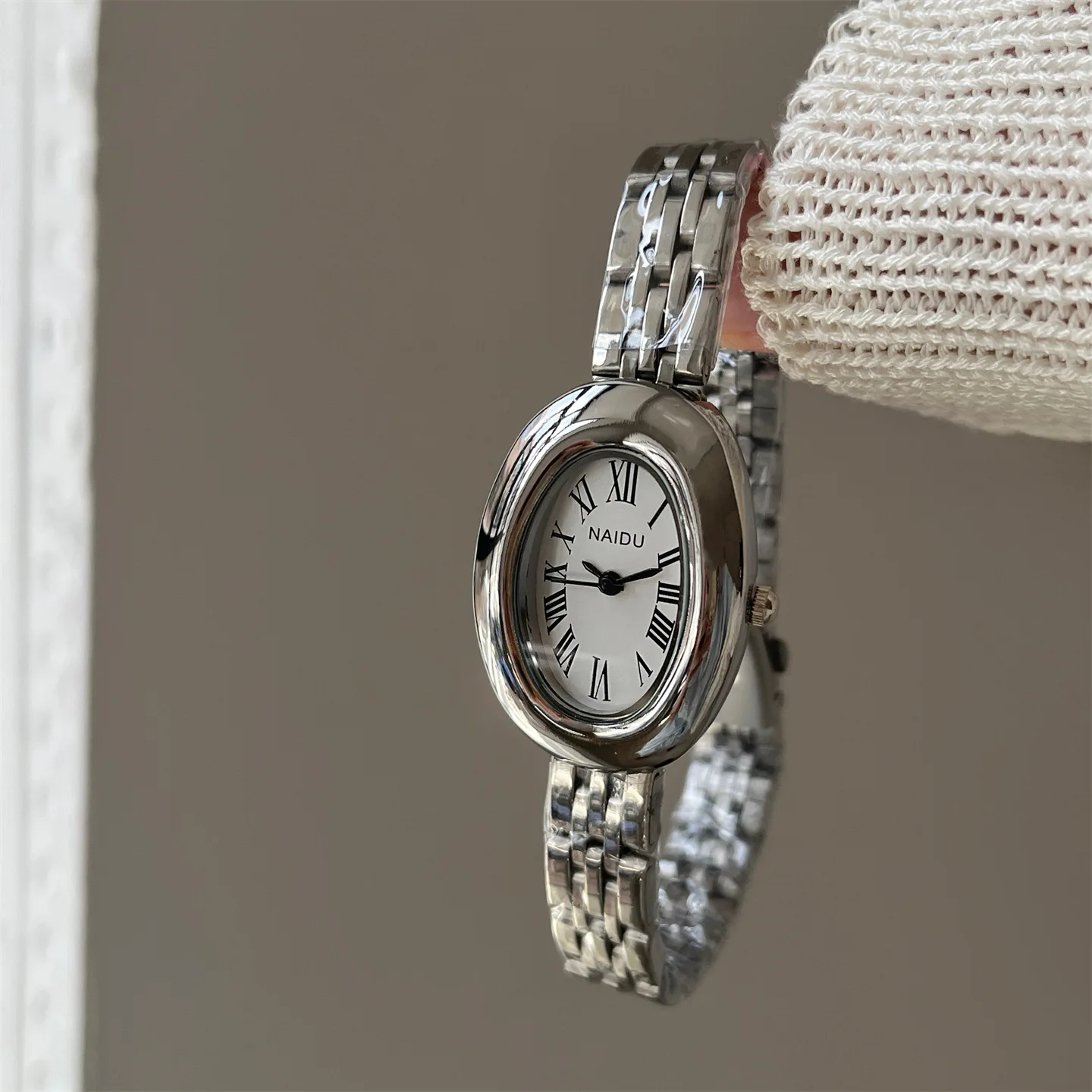 Hot Sale Fashion Watch for Women Mid Ancient Style Oval Dial Small Gold Watch Adjustable Steel Strap Quartz Wristwatch Wholesale
