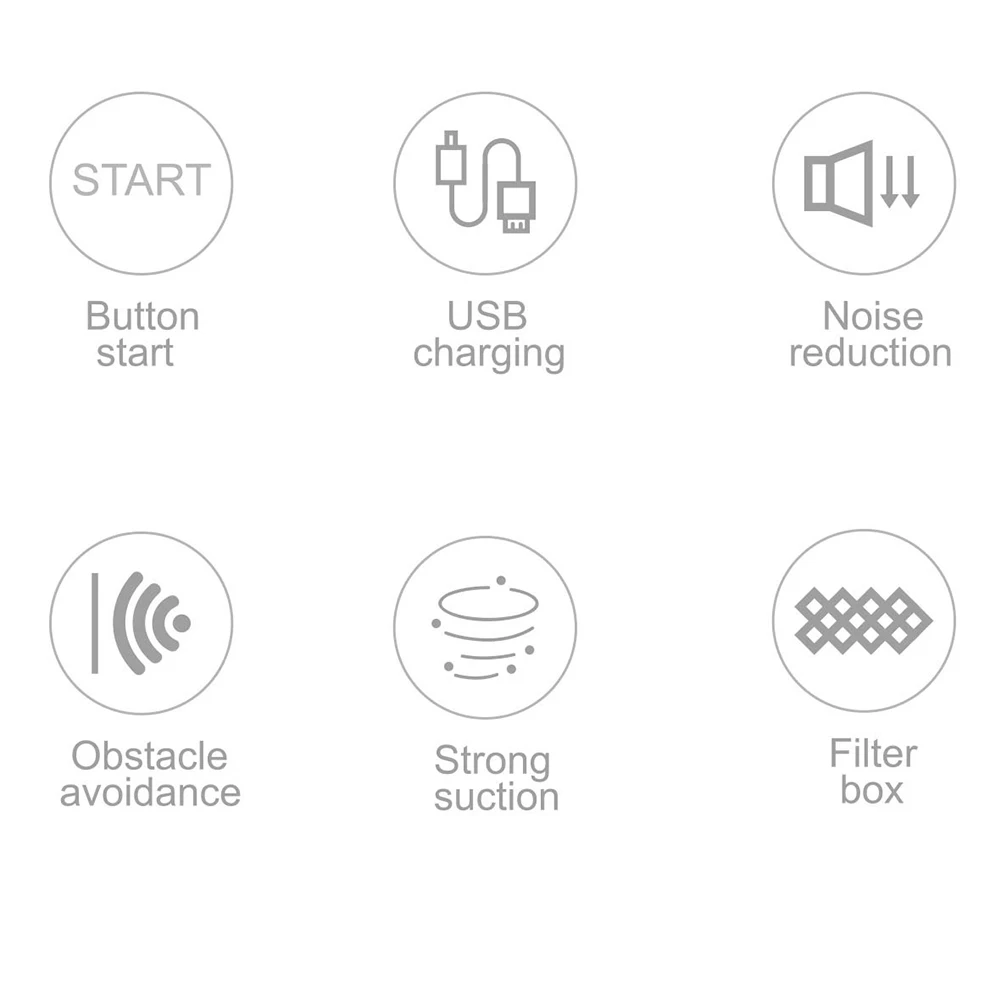 Feature: 1. Smart Navigation: Equipped with omnidirectional wheels, our vacuum cleaner can automatically turn when it encounters obstacles, ensuring complete coverage of your cleaning area. 2. Long-lasting Battery: With a high-capacity 1200mAh lithium-ion battery, our automatic sweeping machine provides extended cleaning time without needing to be recharged frequently. 3. Ultra-thin Design: Our robot vacuum's slim design allows it to move easily through furniture and reach tight spaces that are often missed during regular cleaning. 4. Compact and Portable: The small size of our robotic vacuum cleaner makes it easy to maneuver around sofas, beds, tables, and other furniture in your home. It's also lightweight and portable for easy storage or transportation. 5. Quiet and Versatile: Our robot vacuum operates quietly, making it perfect for use in any room without disturbing your rest or relaxation. It can work on various types of floors like hardwood, tile, or carpet, making it a versatile choice for cleaning your entire home. Specification: Color: black, white (optional) Size: about 220 * 220 * 62mm/8.66 * 8.66 * 2.44inch Material: ABS+electronic components Battery: 1200mAh