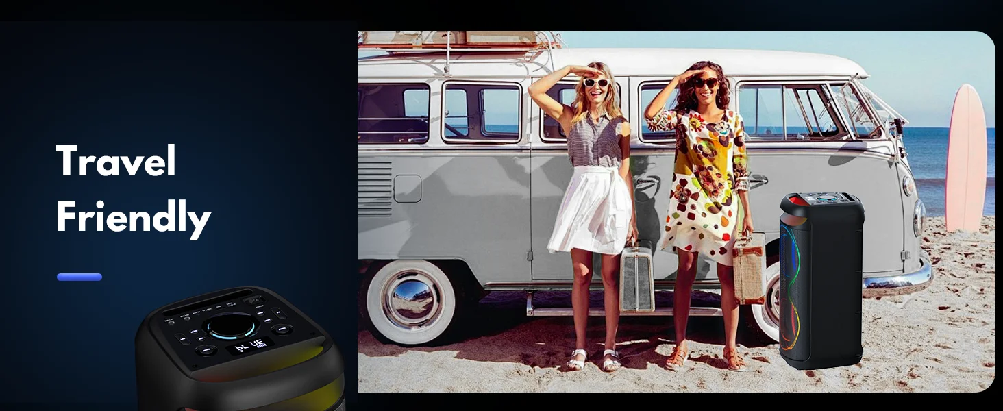 ✿【Walking Music Box】 - Fitted with flexible trolley bars and wheels, allowing you to take this big guy outdoors anywhere. The rechargeable battery ensures that you can party without restraint even outdoors, and the 5200mah capacity guarantees four hours of non-stop partying. Recommended for use while charging for a full day of carnival.