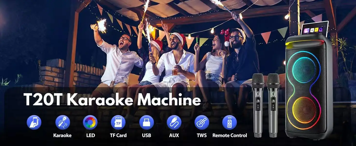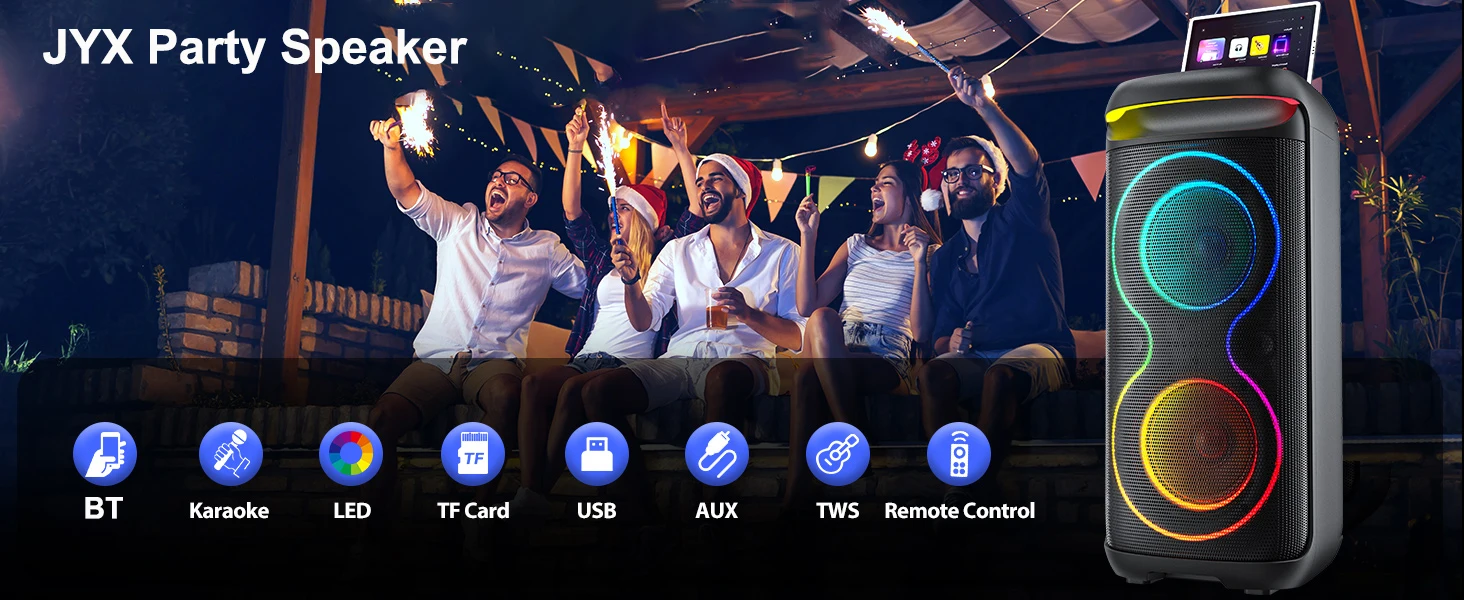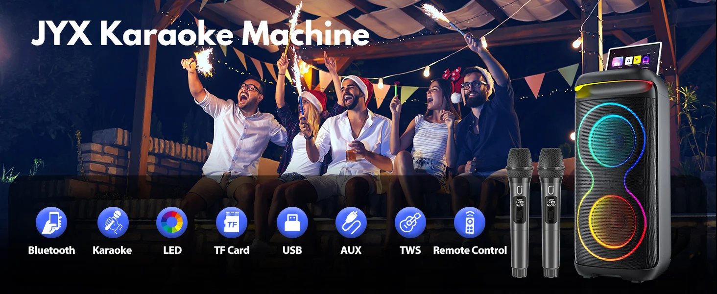 JYX Karaoke Machine with 2 Wireless Microphones for Adults, 8" Big Bluetooth Party Speaker with 500W Peak Power, PA System with LED Disco Light, Rolling Wheels and Trolley, Perfect for Outdoor Home