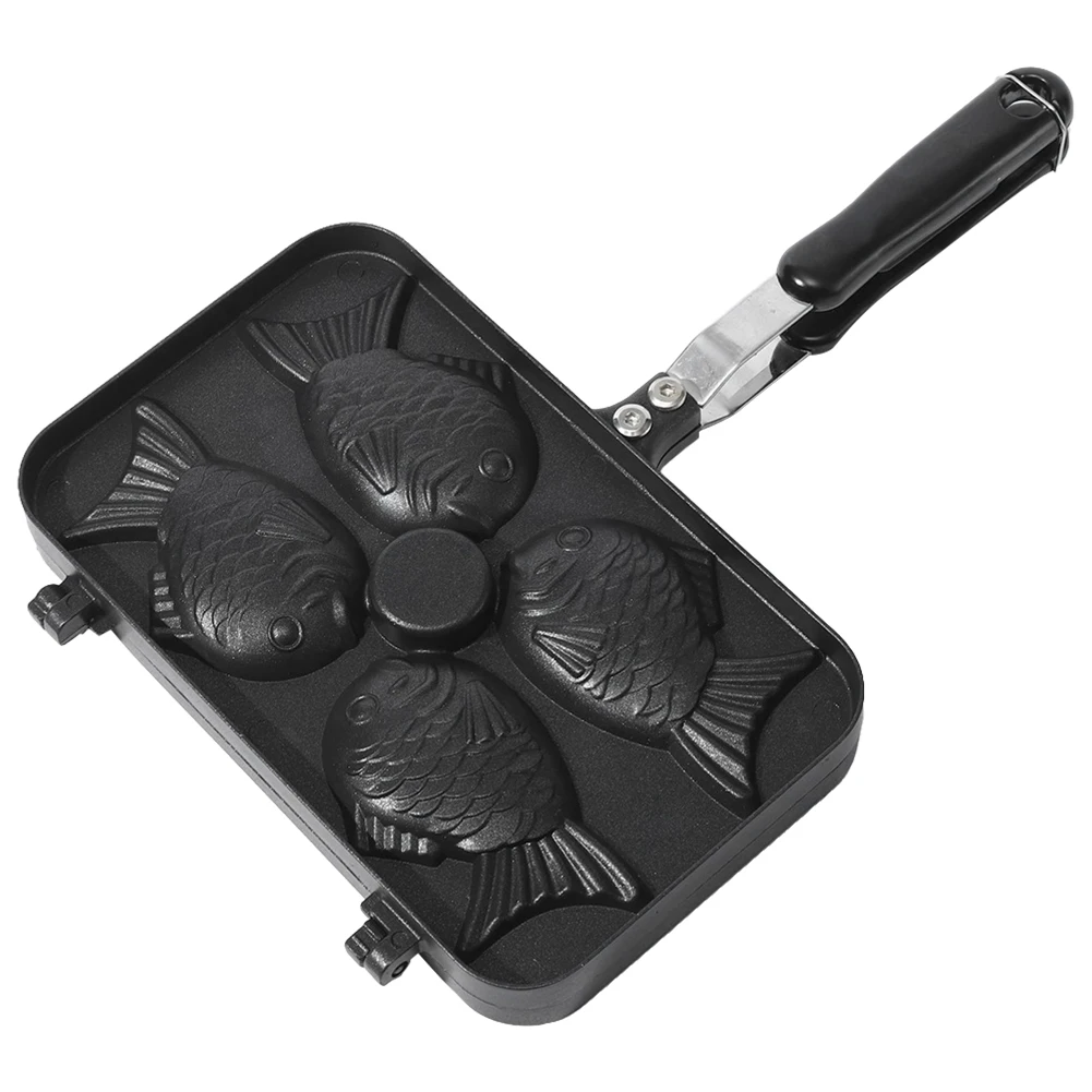 Kitchen Japanese Taiyaki Double Fish Shaped Hot Dessert Waffle Cake Maker Pan Japanese Pancake Double Pan Fry Pan Waffle Molds