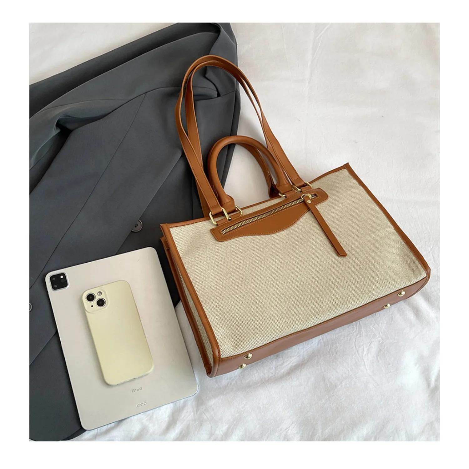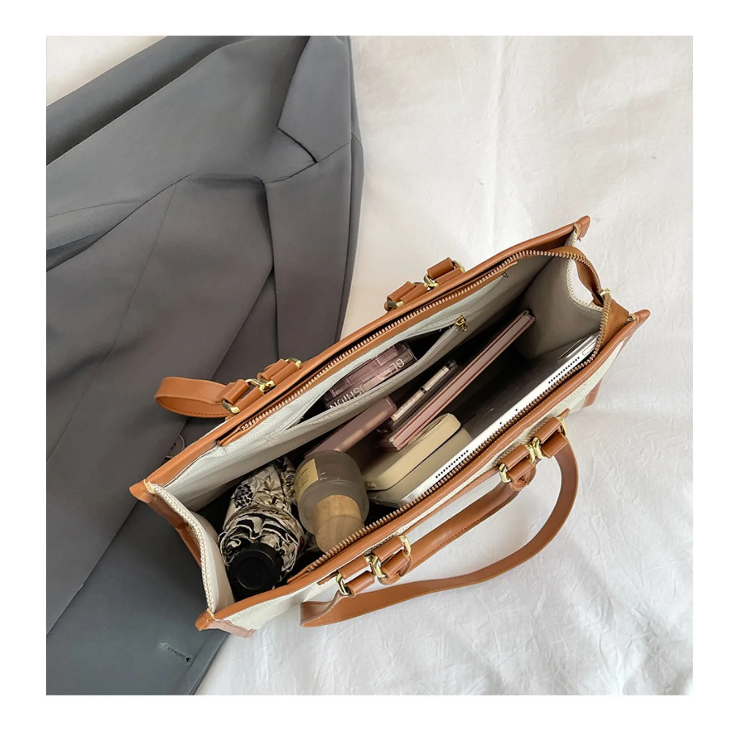 large-capacity women's leisure canvas bag, simple single-shoulder commuter bag Tote bag, suitable for daily commuting