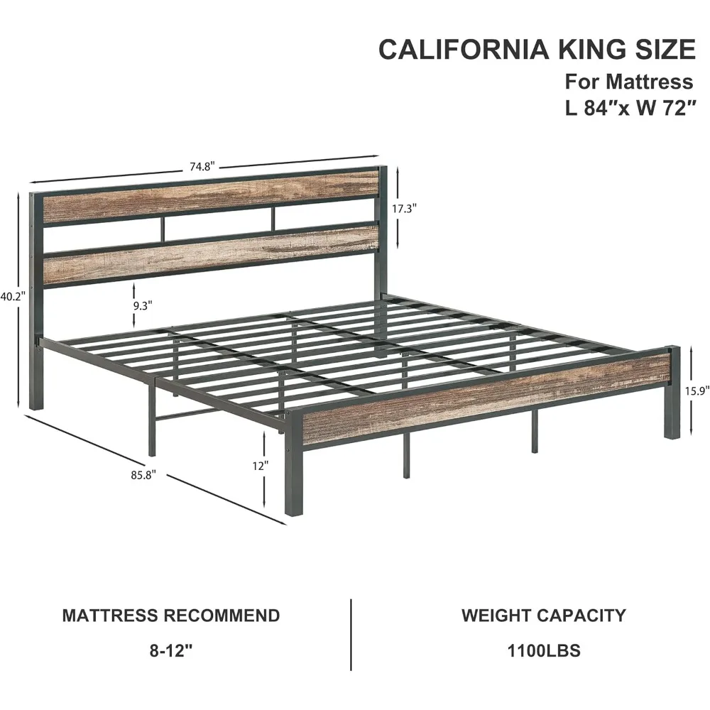 likimio california king bed frame wtih headboard, easy assembly, noise-free, no box spring needed, heavy strong metal support fr