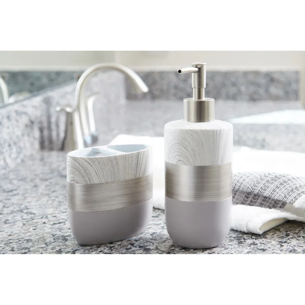 Liselotte soft grays and brushed silver bath Toothbrush Holder 4. 04x2. 31x4. 24". Natural.