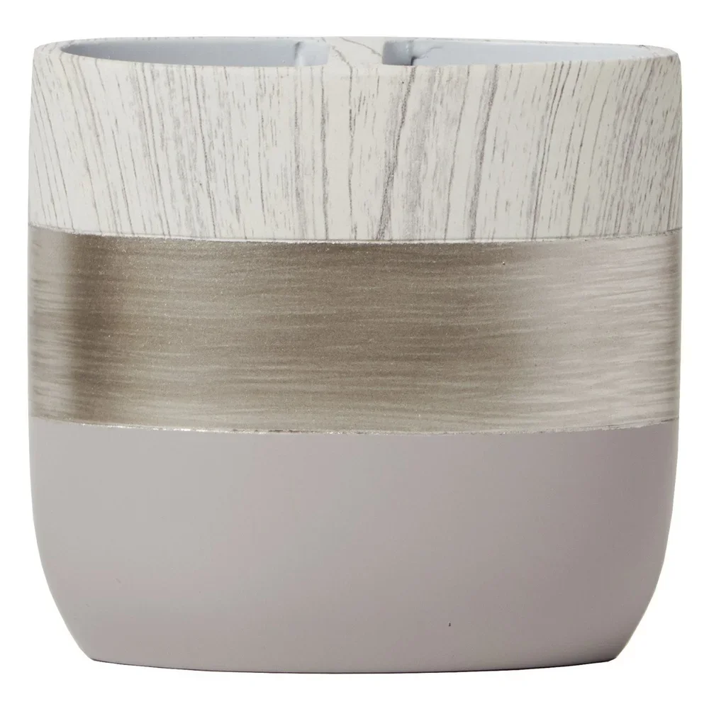 Add sophistication to your bath decor with the soft grays and brushed silver of the sophisticated Liselotte toothbrush holder by Saturday Knight Ltd. The mix of finishes add contemporary style to this functional piece. The Liselotte toothbrush holder will accommodate both manual and electric toothbrushes. Dimensions: 4. 04x2. 31x4. 24". Product wide is measured 2. 31" and length is 4. 24" with Height 4. 04". Color: Natural. Material: Made from Resin. Care instruction: Easy care - Wipe clean with a damp cloth.