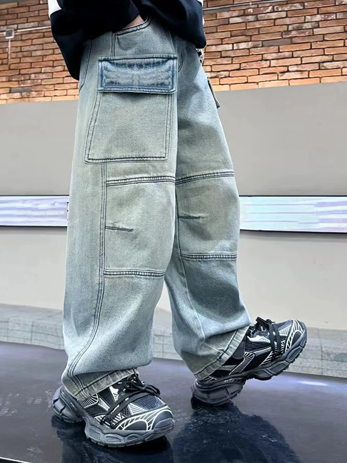 Loose-fit, wide-leg, long straight-leg jeans in washed light blue for teenage boys