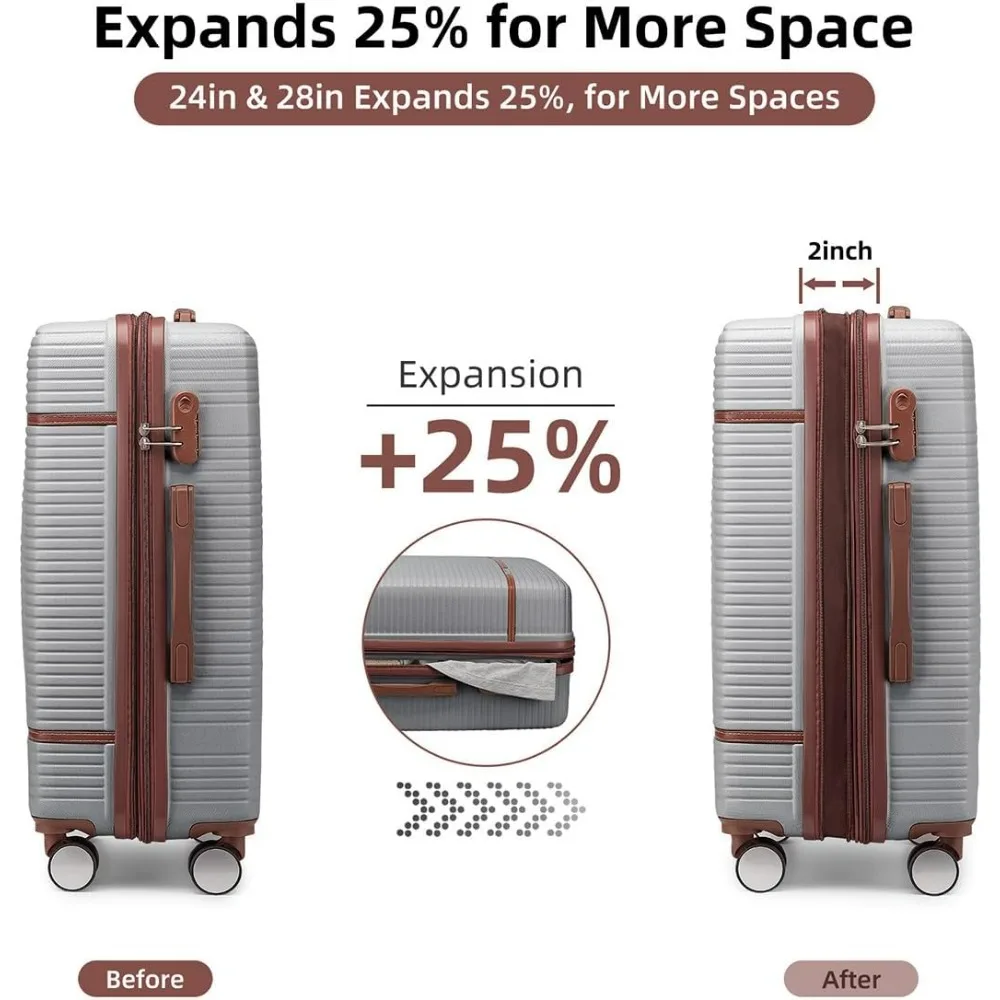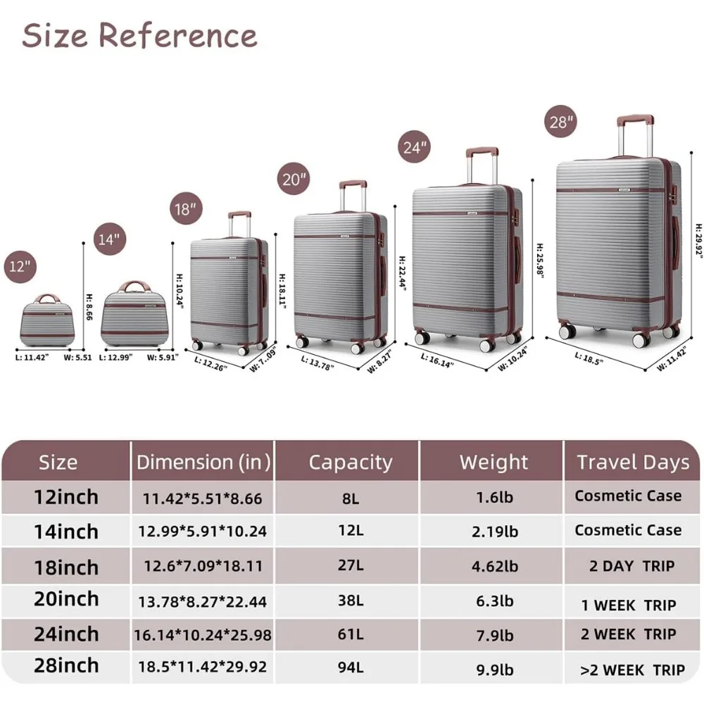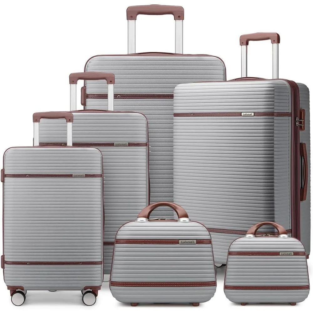 - 6 Piece Luggage Sets: Lulusail luggage sets include four suitcases and two cosmetic cases, perfect for all your travel needs. Only 28inch and 24inch are expandable, adding 25% space capacity for hardshell luggage, 18inch, 20inch and 24inch luggage is perfect for business and personal travel, 12inch, 14inch suitcase can store toothbrush,wallet,makeups,etc.