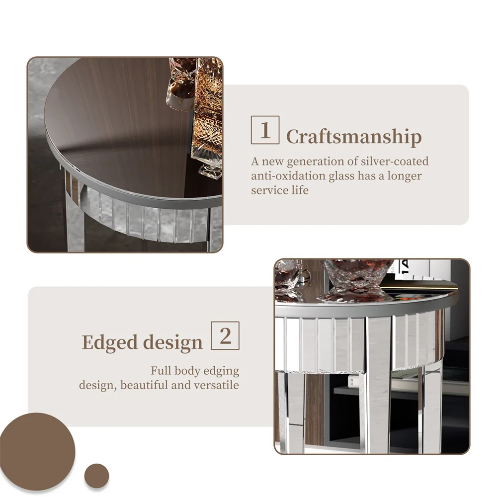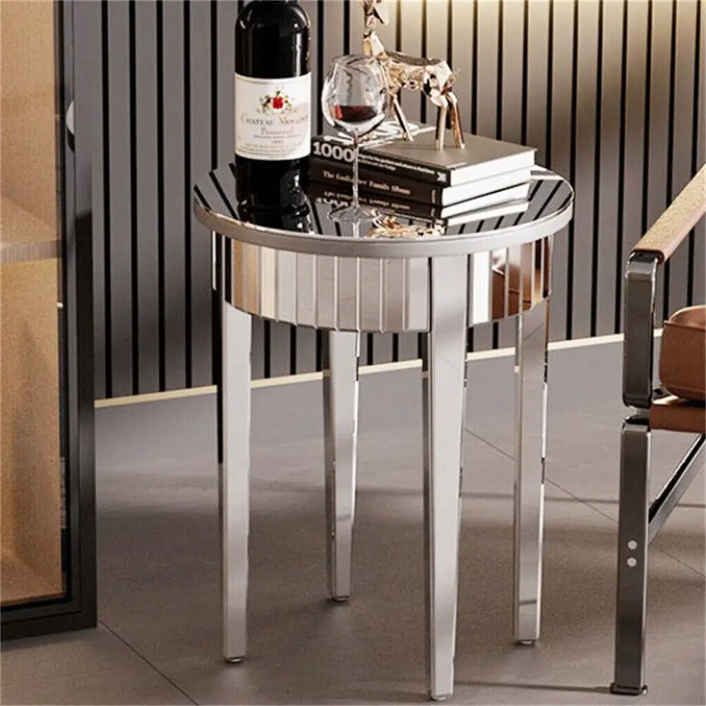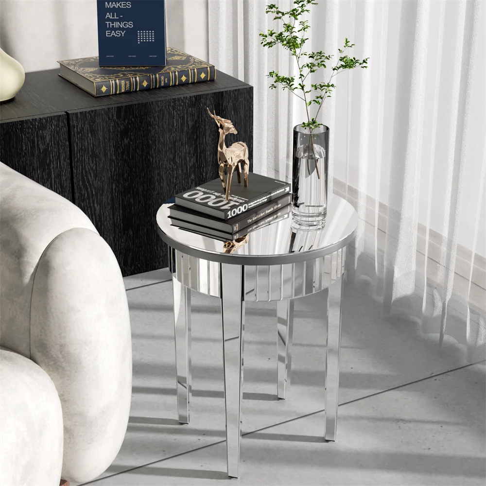 【Silver Mirror End Table】Perfect blends of MDF board andsilver-plated anti-oxidant glass,will bring the tones and accents togetherto blend into any styles, this end table will become an instant focal pointwhether gracing your living room, sofa couch side, TV cabinet, bedroom, or hallway