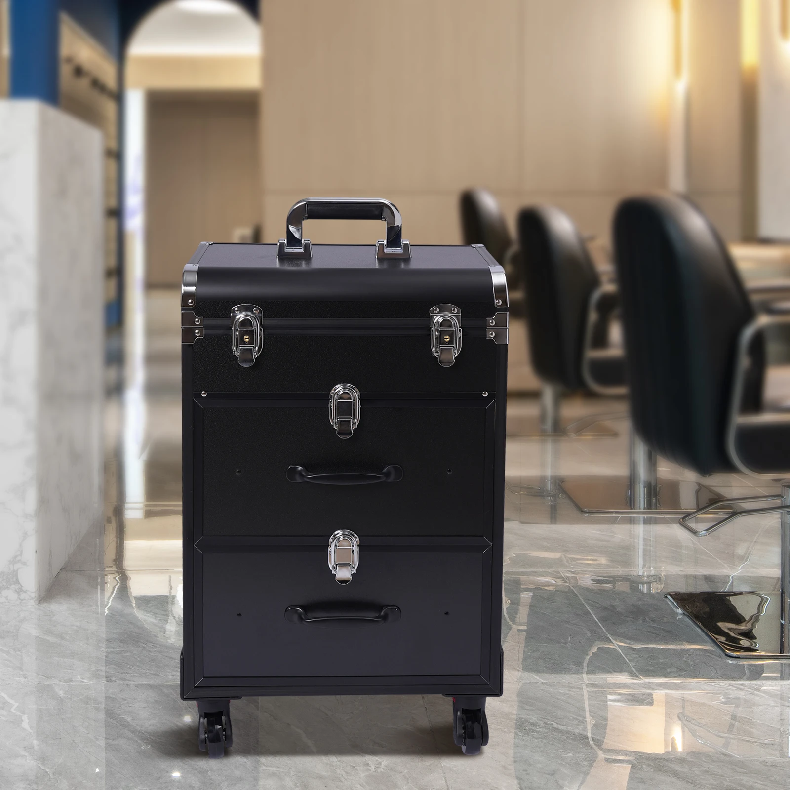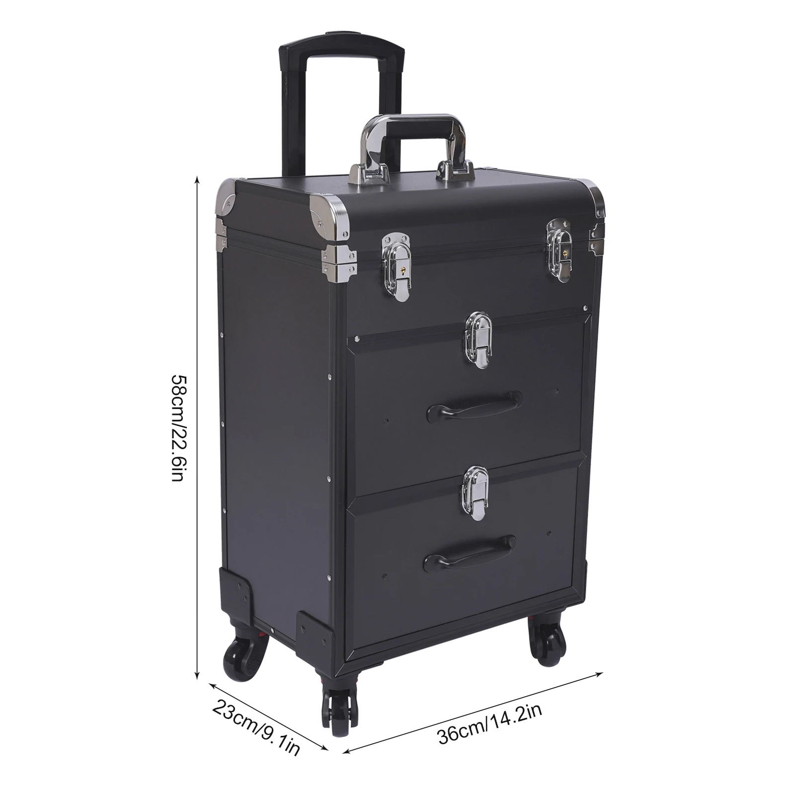 Makeup Train Case,Rolling Beauty Salon Luggage Hairdressing Trolley Travel Organizer Tool Box Cosmetic Luggage (Black Small)