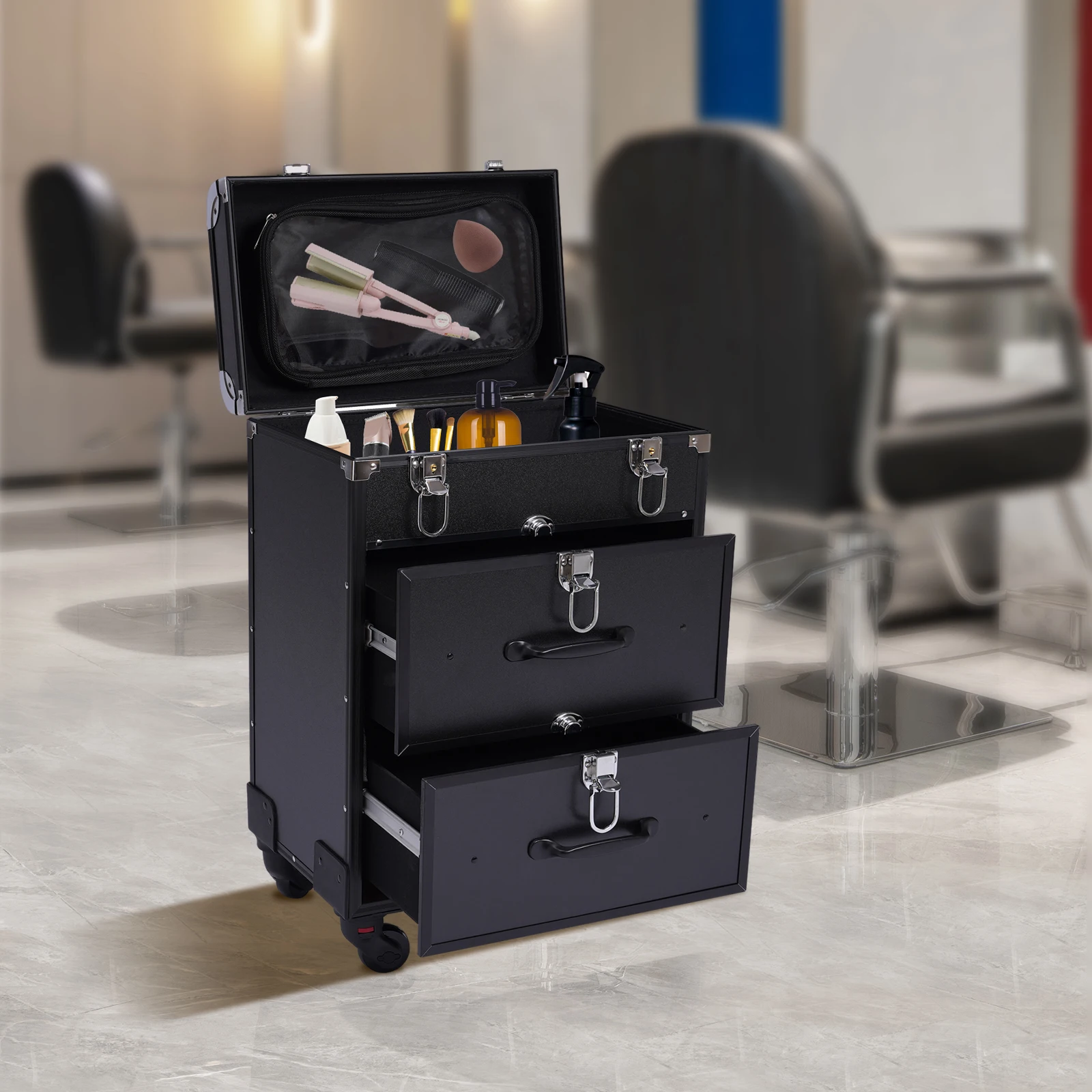 This rolling make-up case is suitable for professional make-up artists, hairdressers, nail technicians, and beauticians in beauty centers, salons, private homes, parties, and other occasions.