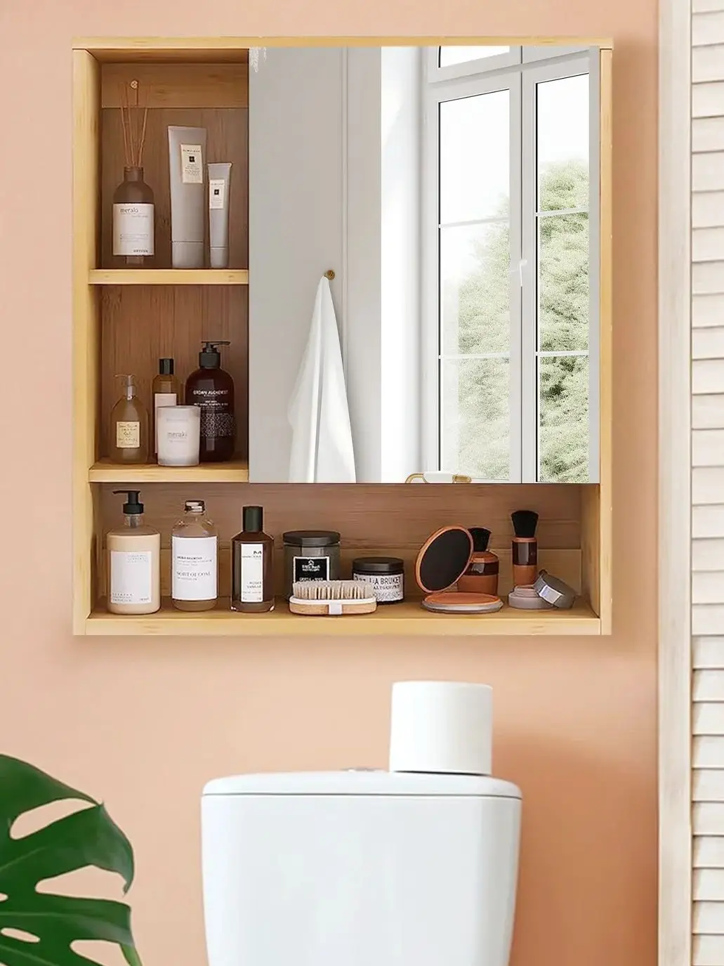 Medicine Cabinet with Mirror: Natural Bamboo Bathroom Vanity Mirror Cabinet Wall Mounted Cupboard with Storage Shelves for Bedro