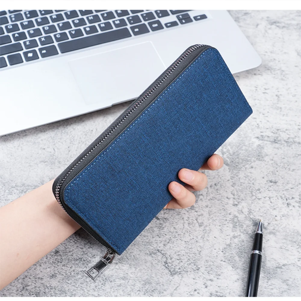 Men Long Wallet Large Capacity Multiple Card Slots Canvas Zippered Purse Business Handbag Card Holder Wallet Coin Bag