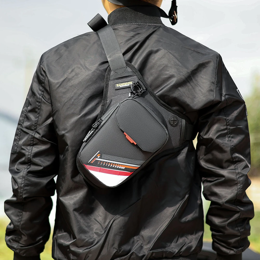Men Motorcycle Crossbody Bag Reflective Multifunctional Waist Bag Adjustable Large Capacity for Hiking Camping Fishing