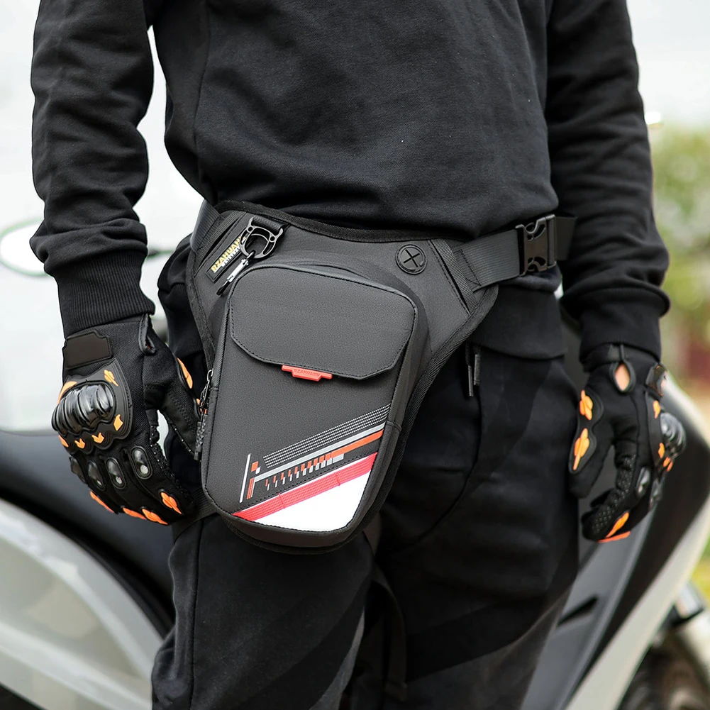 Men Motorcycle Thigh Bag Waterproof Multifunctional Waist Bag Reflective Large Capacity for Hiking Camping Fishing