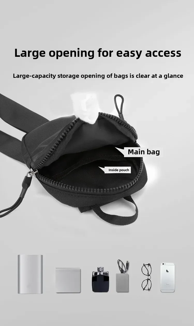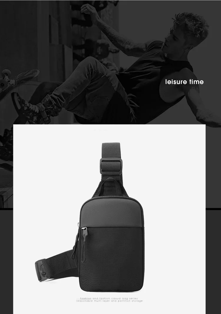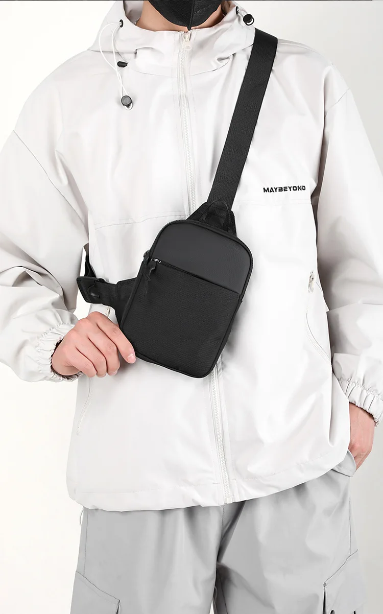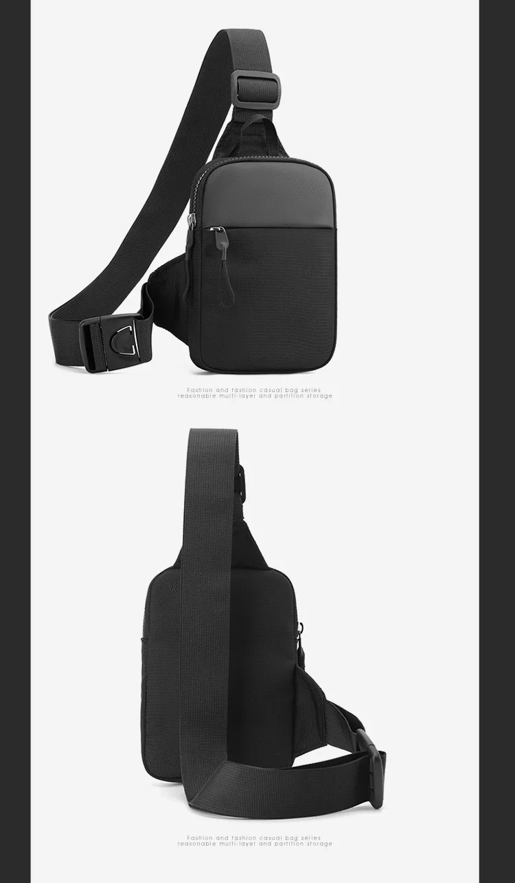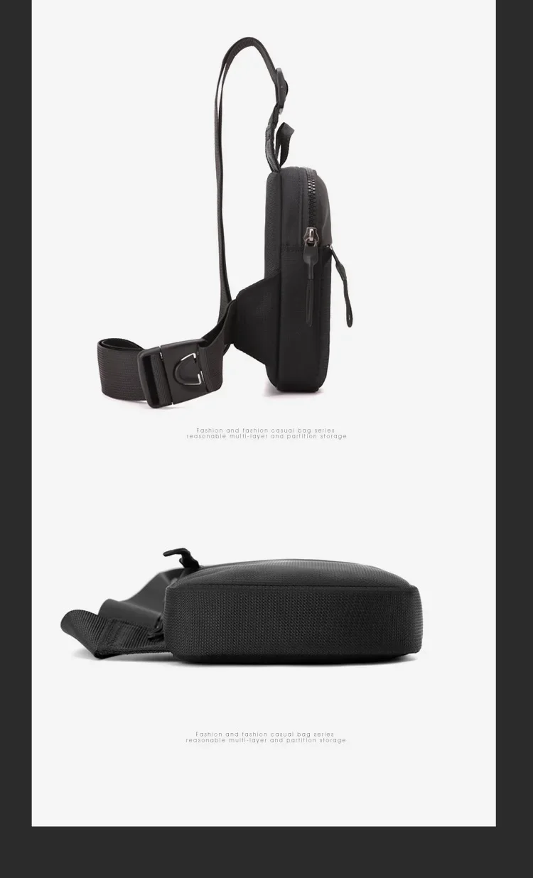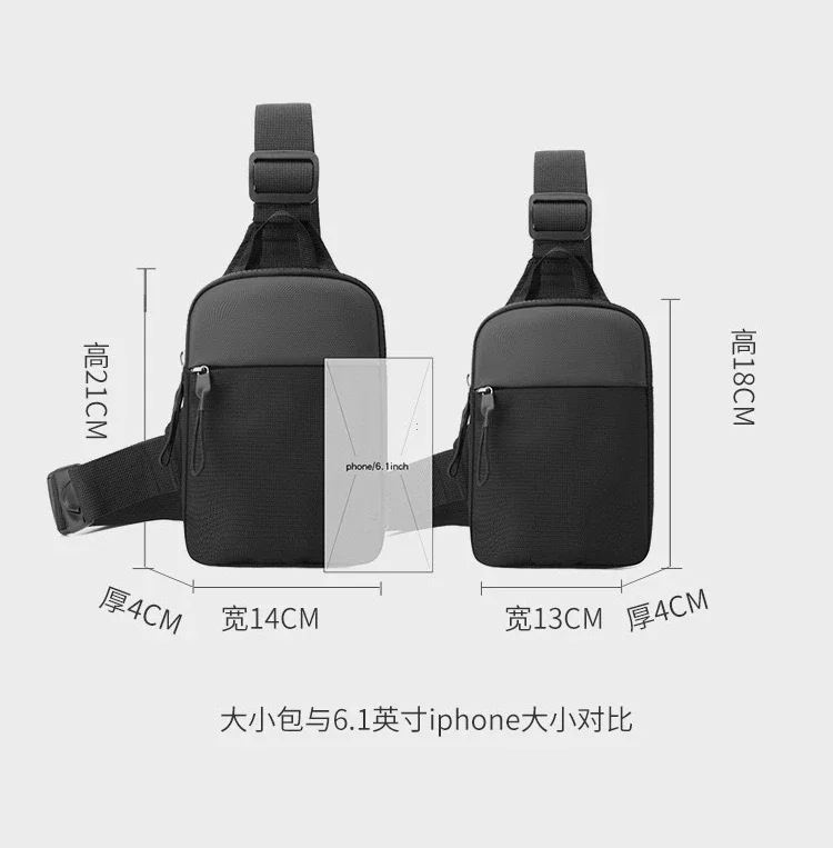 Men Waterproof Sling Chest Pack Fashion Small Black Crossbody Shoulder Zipper Bag Travel Workout Handbag Messanger Bag for Men